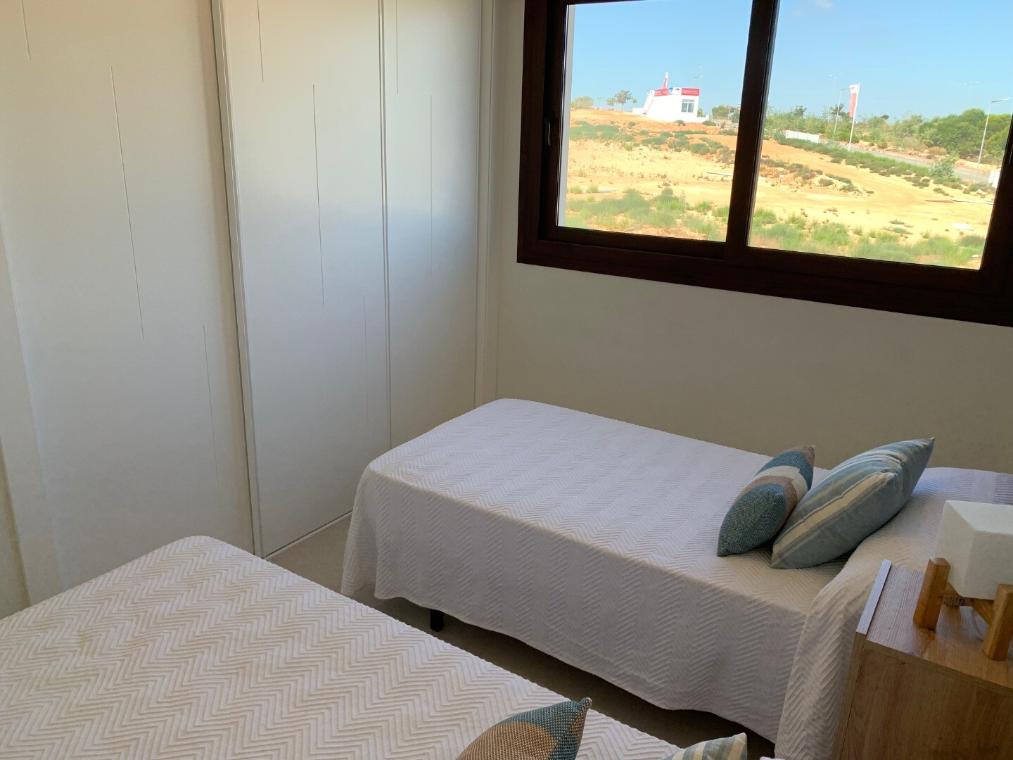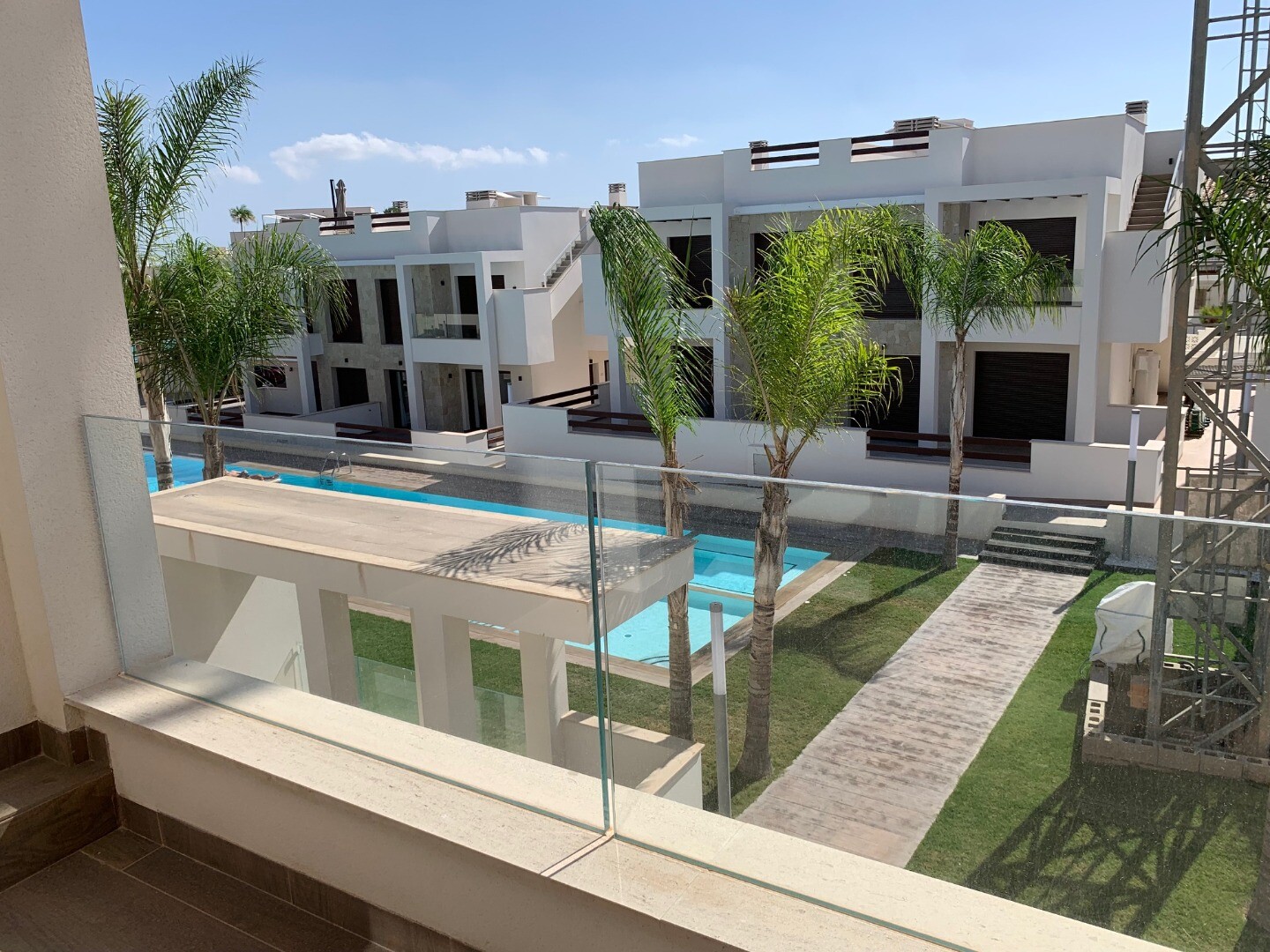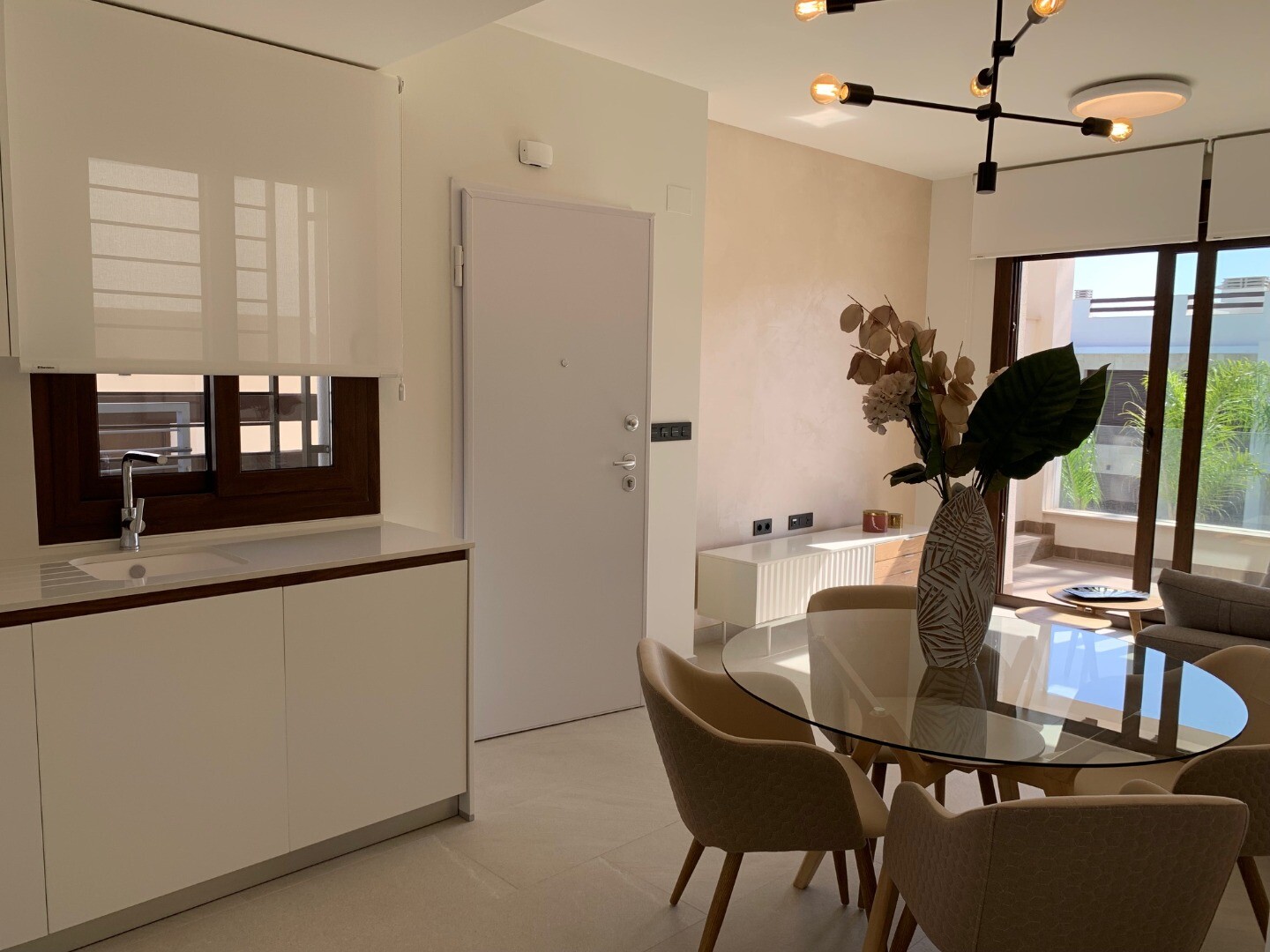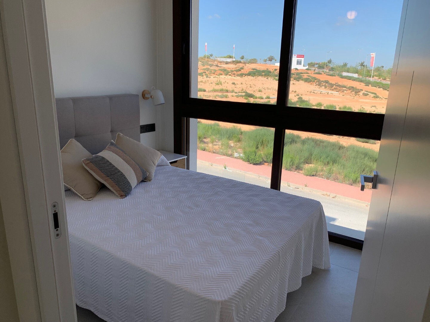 Från solariet har du en vacker utsikt över den rosa saltsjön i Torrevieja, samt lite utsikt över havet. Balkongen har utsikt över den gemensamma trädgården och poolen.