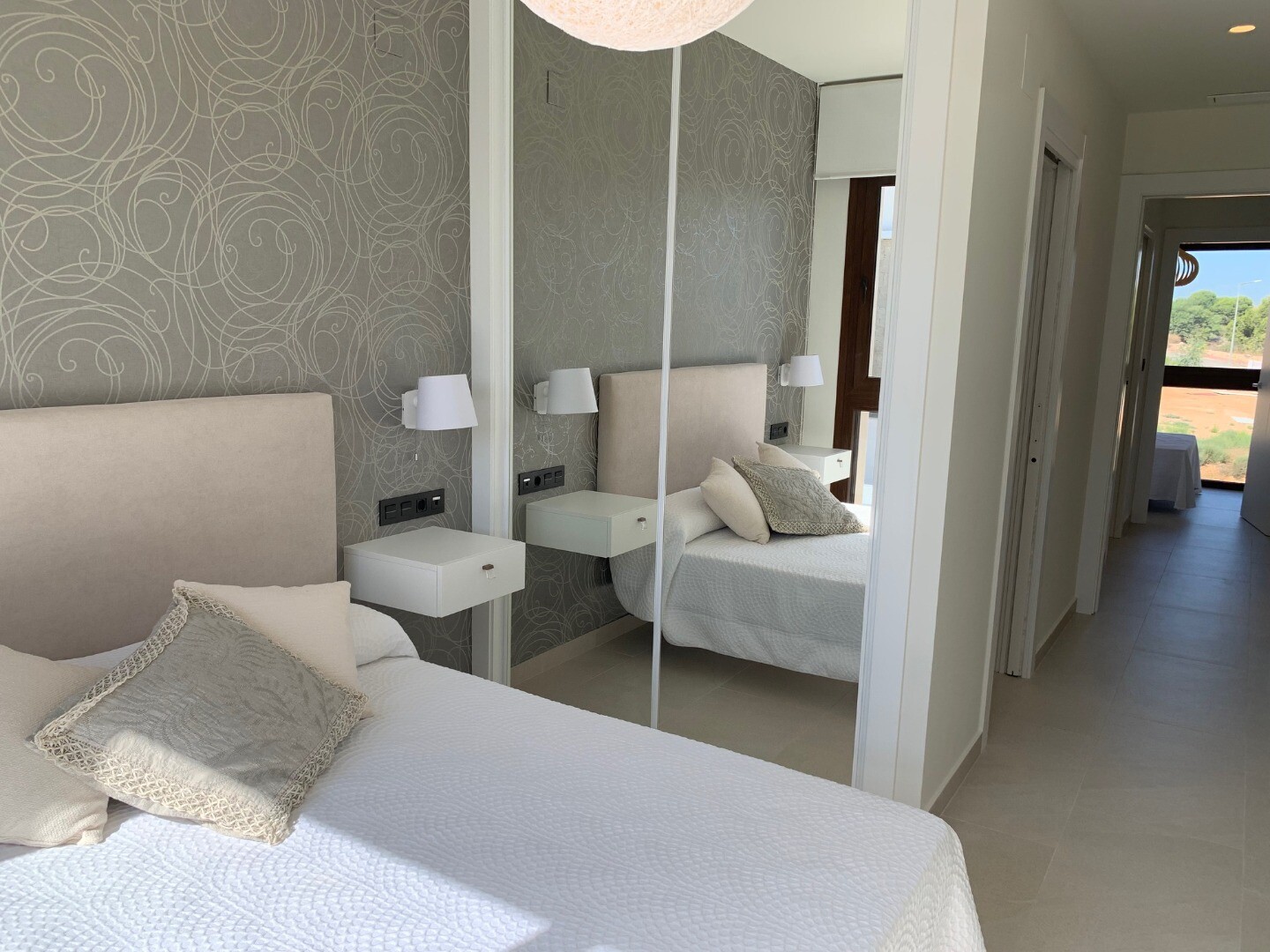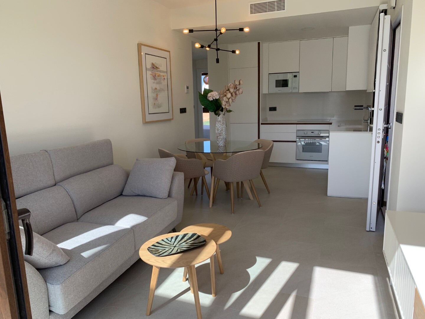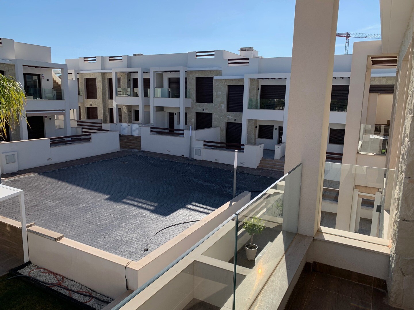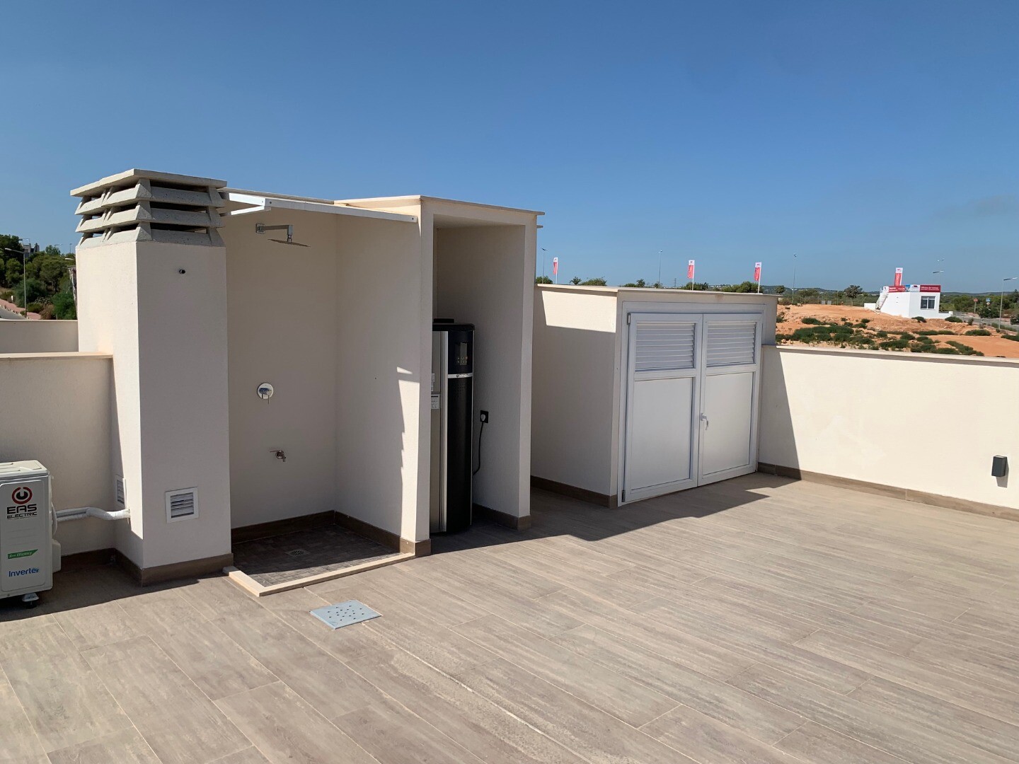 Från solariet har du en vacker utsikt över den rosa saltsjön i Torrevieja, samt lite utsikt över havet. Balkongen har utsikt över den gemensamma trädgården och poolen.