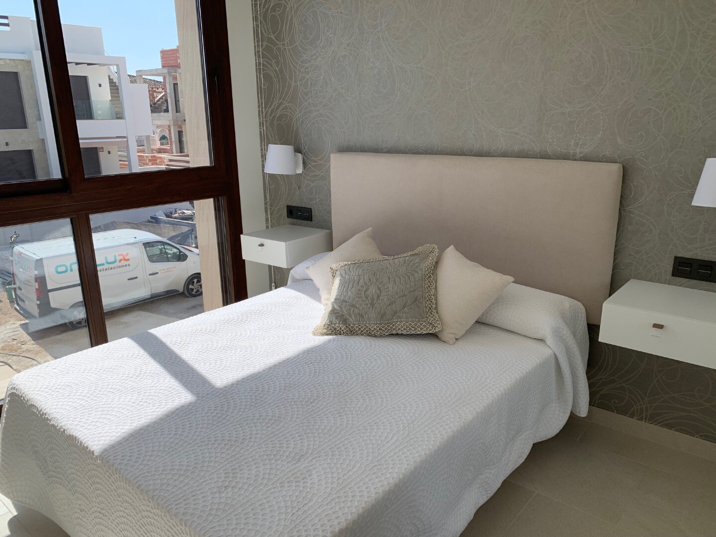 Denna unika och moderna takvåning har fullt installerad l...uftkonditionering, golvvärme i badrummen och elektriska fönsterluckor på alla fönster. Huset säljs fullt möblerat och utrustat med duschväggar, belysning och gardiner. Detta hus inkluderar också ett underjordiskt förråd och garage (nº105) på -1.