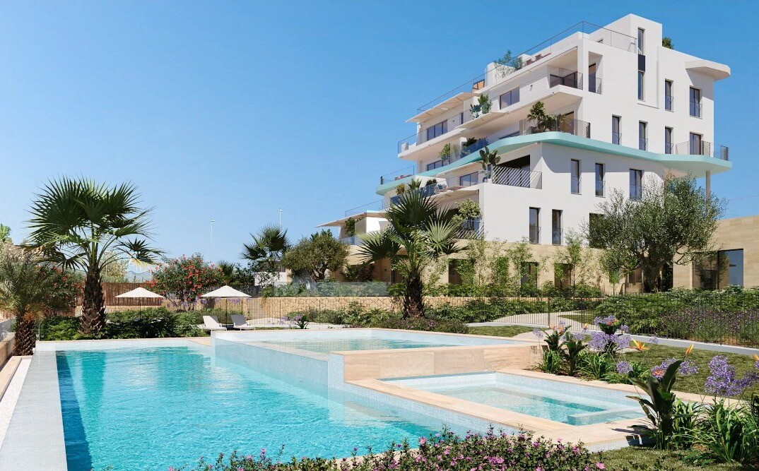 Nybyggt projekt, trädgårdslägenheter, duplex och takvåningar vid stranden, bredvid Benidorm och Villajoyosa (Costa Blanca Alicante, Spanien). Högkvalitativa fastigheter byggda med förstklassiga material såsom värmeisolering, aerotermisk luftkonditionering, fullt utrustade och utrustade kök och badrum... Modern design med rymliga terrasser för att n...juta av havsutsiktens prakt. Alla de eleganta vita tornblocken har bara sex våningar och det finns stora grönområden mellan dem alla. Ett till fyra sovrum fastigheter med rymliga rum.