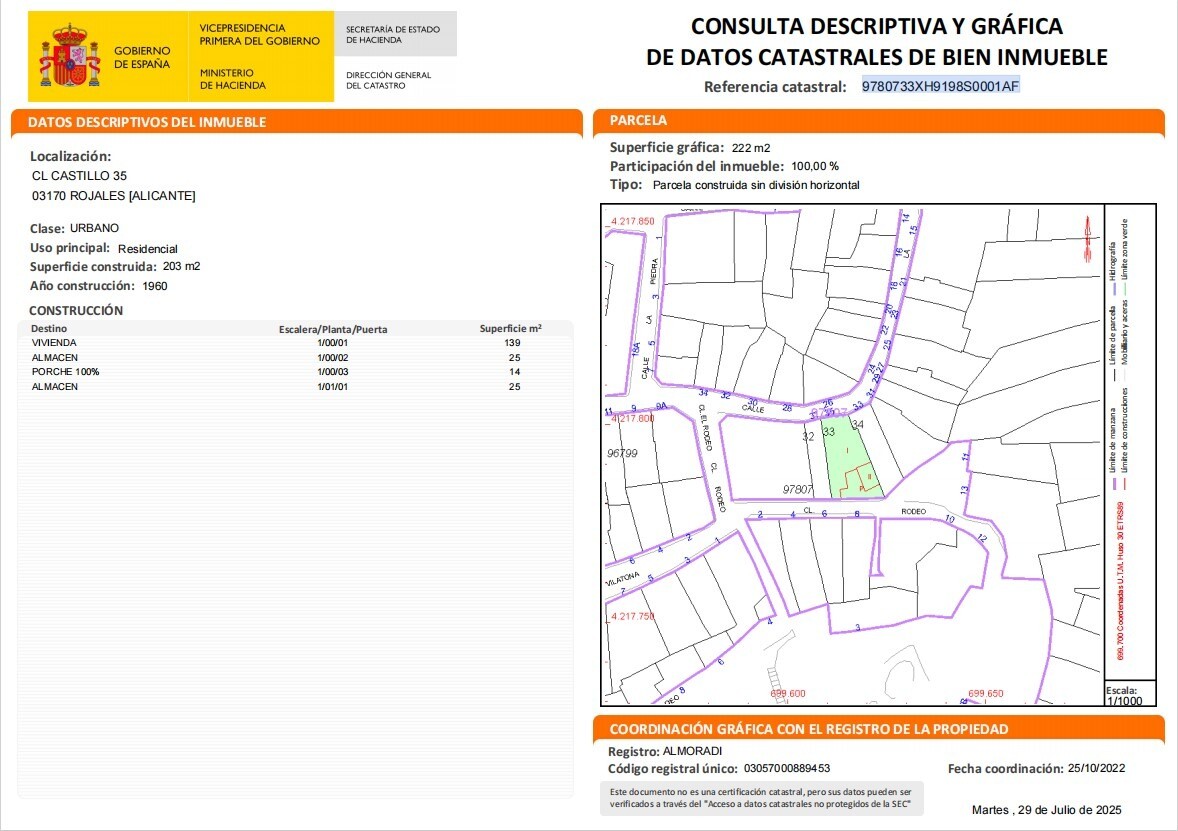 Möjlighet i hjärtat av gamla stan i Rojales. En tomt på 222 m² (enligt fastighetsregistret) med fasad mot två gator säljs, idealisk för att bygga ditt drömhus eller investera i ett projekt med stor potential. Tomten har för närvarande en byggnad som är halvrenoverad, så du kan fortsätta det befintliga arbetet eller riva och börja om från början, be...roende på din vision och dina behov. Tomten ligger i ett charmigt, lugnt område med alla bekvämligheter inom gångavstånd: stormarknader, restauranger, apotek, banker, kollektivtrafik, skolor och mycket mer. Bara 10 minuter från stränderna i Guardamar och 35 minuter från Alicante flygplats. Kontakta oss för att boka en visning och upptäcka all potential som denna fastighet har att erbjuda!