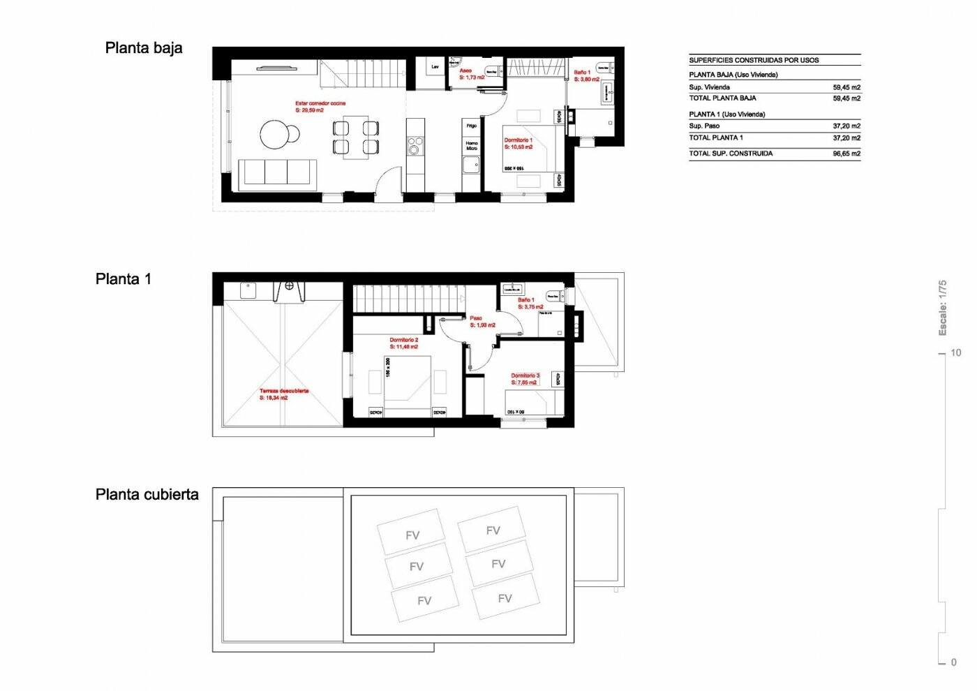 Villorna har 3 sovrum, 2 badrum, privat trädgård med pool, matsal - vardagsrum med öppet kök, sovrum med inbyggda garderober, eget badrum på bottenvåningen och på första våningen 2 sovrum, inbyggda garderober och badrum. ...