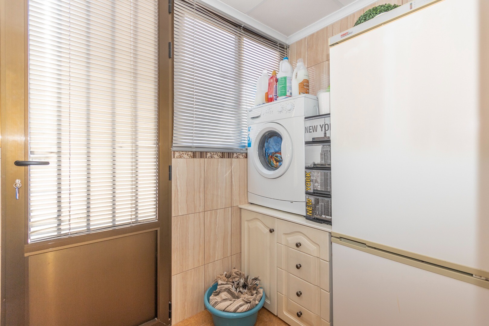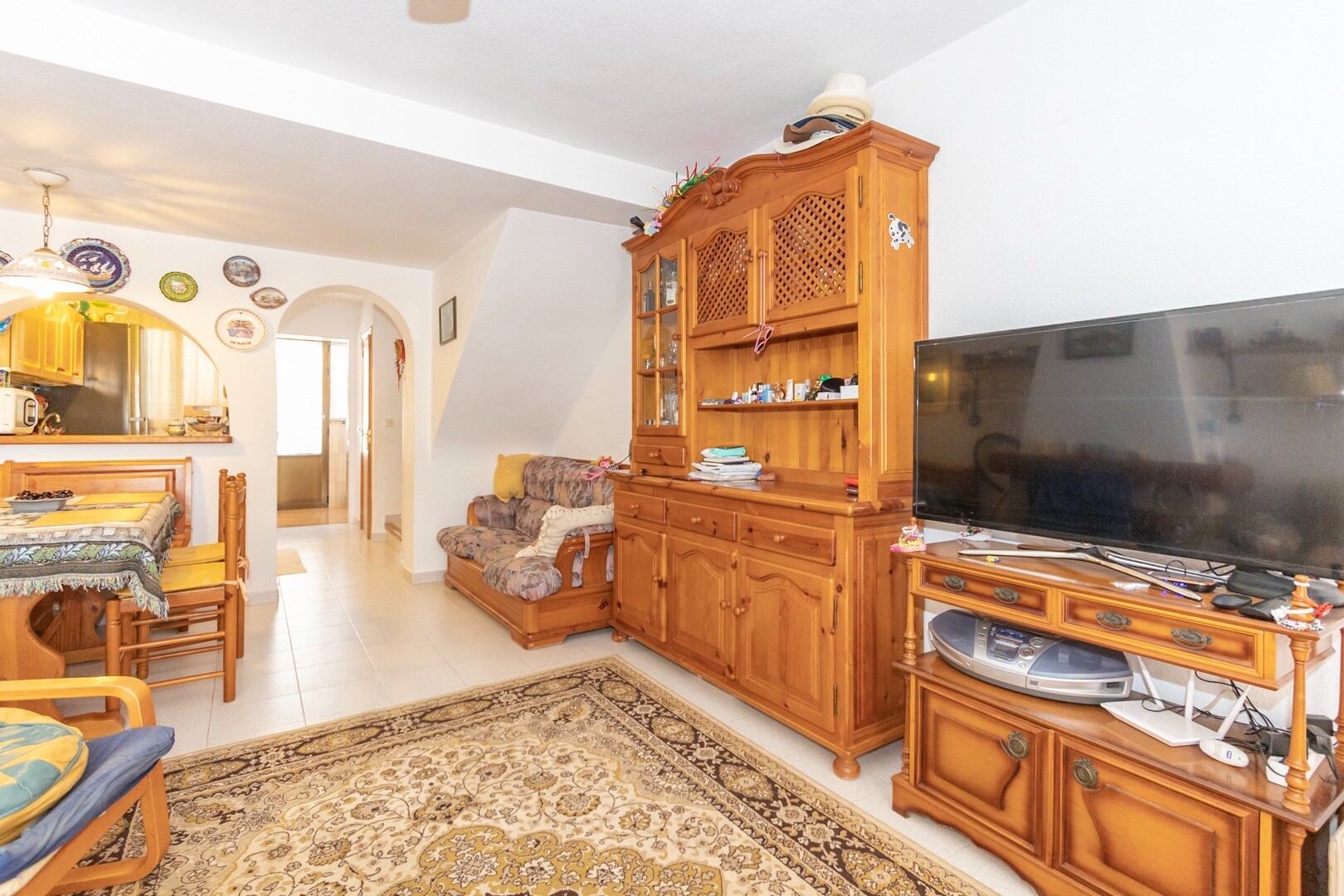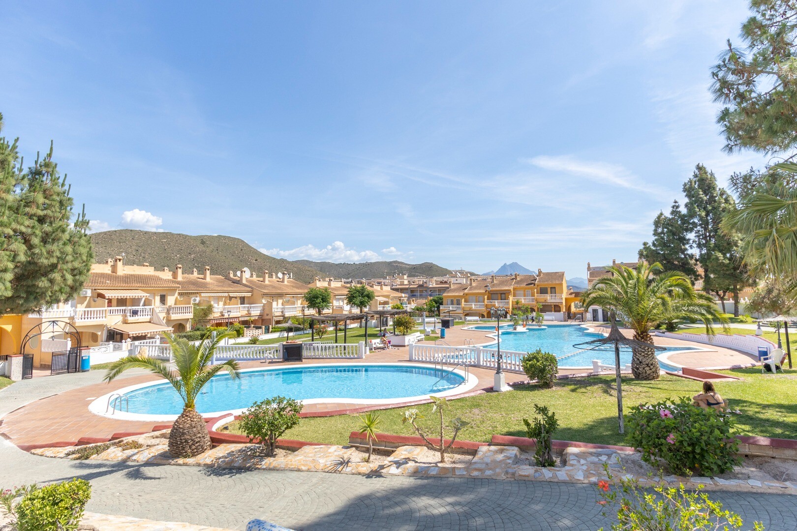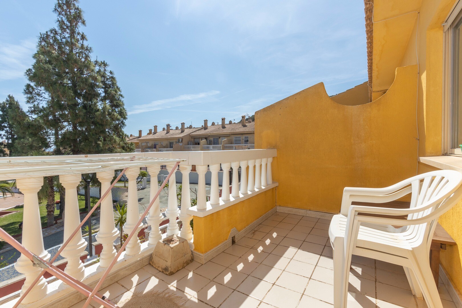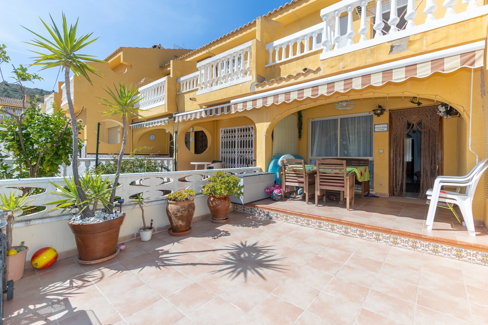 När det gäller bekvämligheter inkluderar fastigheten en gemensam pool, perfekt för varma dagar. Den har även ett förråd och ett tvättrum, element som förbättrar funktionaliteten i utrymmet. Huset säljs fullt möblerat, inklusive hushållsapparater, vilket underlättar flytten.