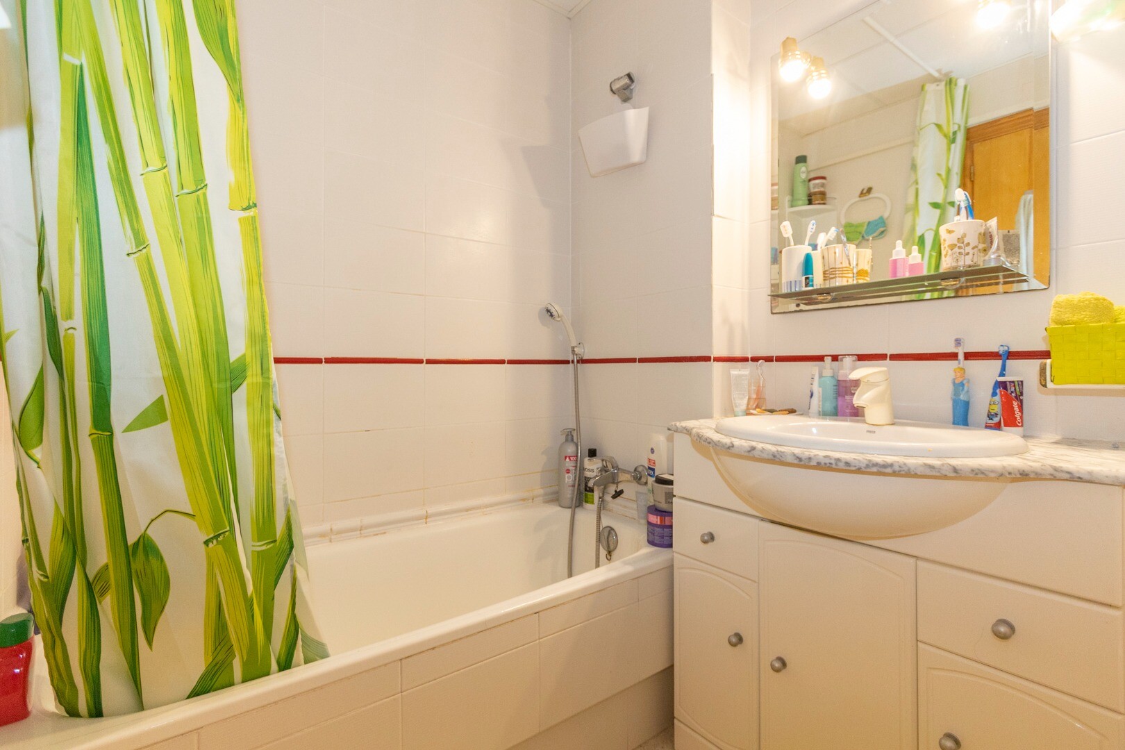 Bungalown inkluderar ett fullt utrustat badrum och en gästtoalett, vilket ökar praktiken i... bostaden, särskilt för familjer eller gäster. Med två terrasser ger fastigheten möjlighet att njuta av utomhusutrymmen med utsikt över trädgårdarna och den gemensamma poolen och skapar en avkopplande och mysig atmosfär.