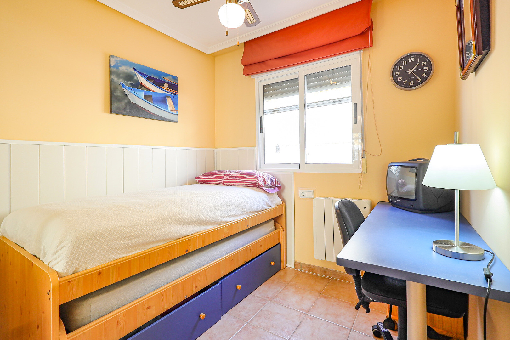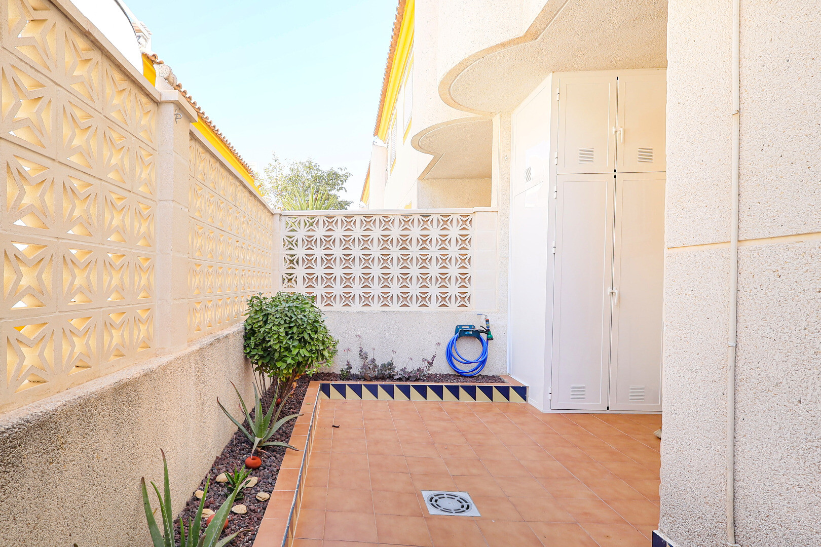 Vill du bo på en lugn plats där du kan njuta av Medelhavssolen året runt? Vi presenterar detta radhus på bottenvåningen, med stor terrass i sydostläge och gemensam pool, beläget i El Edén Urbanization, bara 3 km från Guardamar Del Segura, Alicante-provinsen. Fastigheten har två dubbelrum med inbyggda garderober, ett badrum och luftkonditionering va...rm / kall i sovrummet och i vardagsrummet / matsalen. På baksidan finns en uteplats med grill och ett stort skåp. Fastigheten är i utmärkt skick och redo att flytta in. Fastigheten säljs möblerad och med vitvaror. I Guardamar del Segura hittar du vackra sandstränder, parker, grönområden och alla typer av tjänster till hands: parker, grönområden, butiker, restauranger, apotek, stormarknader, skolor, kaféer, bland andra, som erbjuder dig ett bekvämt och praktiskt liv; förutom att kunna njuta av avkopplande promenader på stranden eller vandra när som helst. Alicantes internationella flygplats, med direktflyg till alla större europeiska destinationer, ligger cirka 30 minuter bort. Kontakta oss för mer information och för att ordna en visning, vi ser fram emot att träffa dig!
