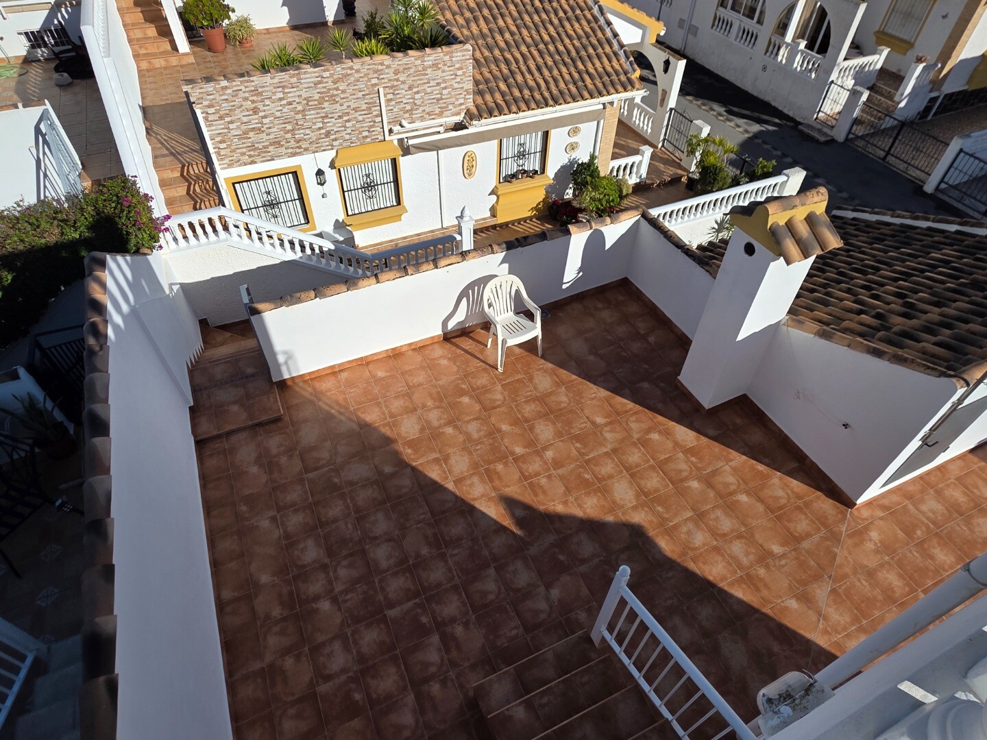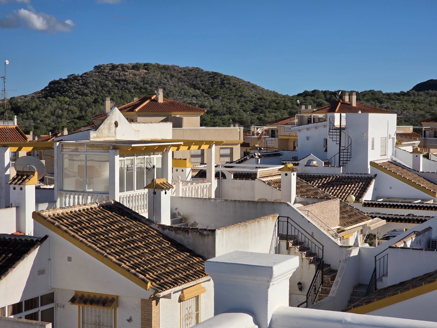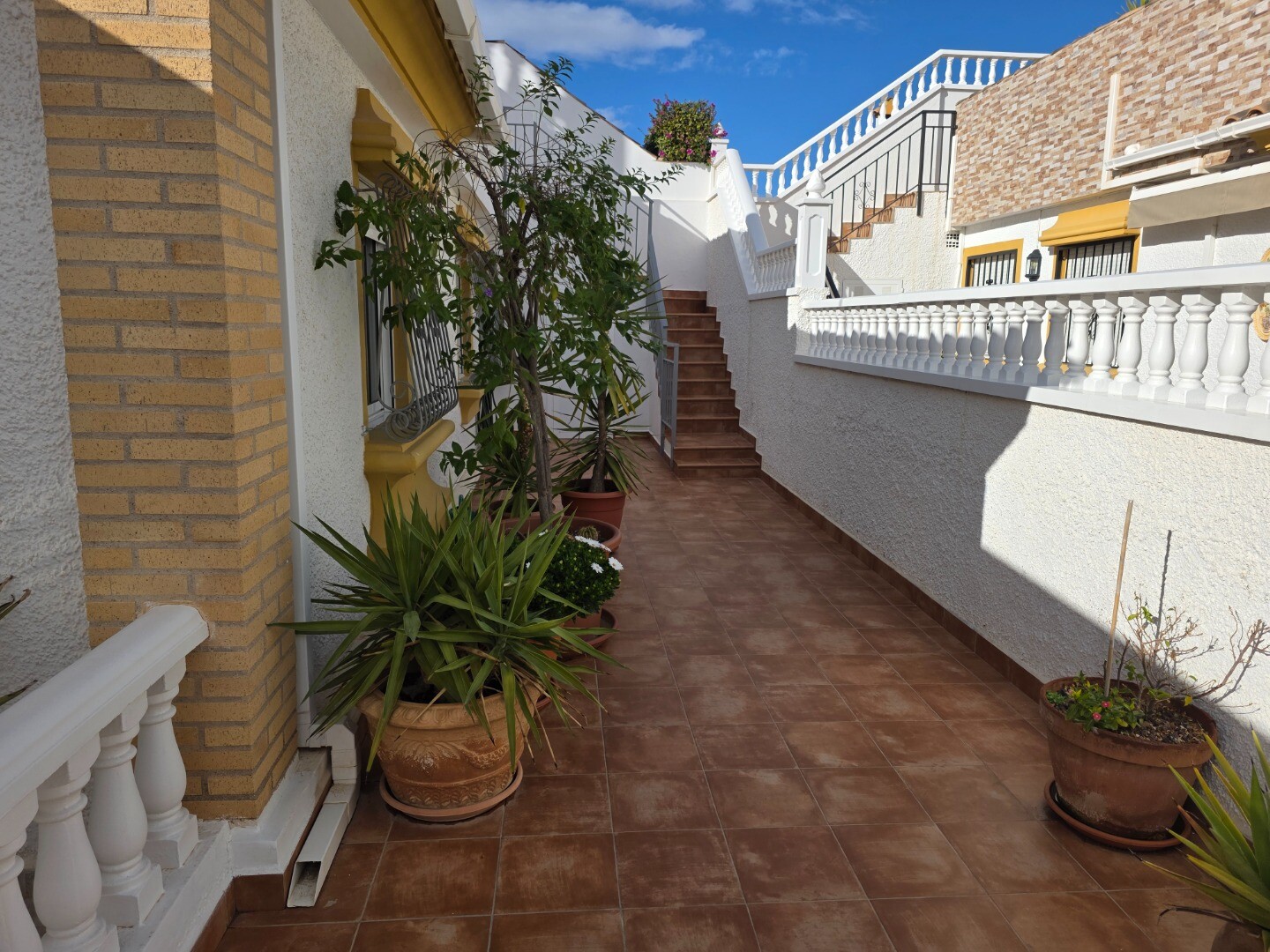 Detta hörnhus i bottenvåningen har två sovrum och två badrum. Ett gästhus har installerats på takterrassen, och ovanför detta gästhus finns ytterligare en takterrass som erbjuder panoramautsikt över hela dalen med delvis havsutsikt.
