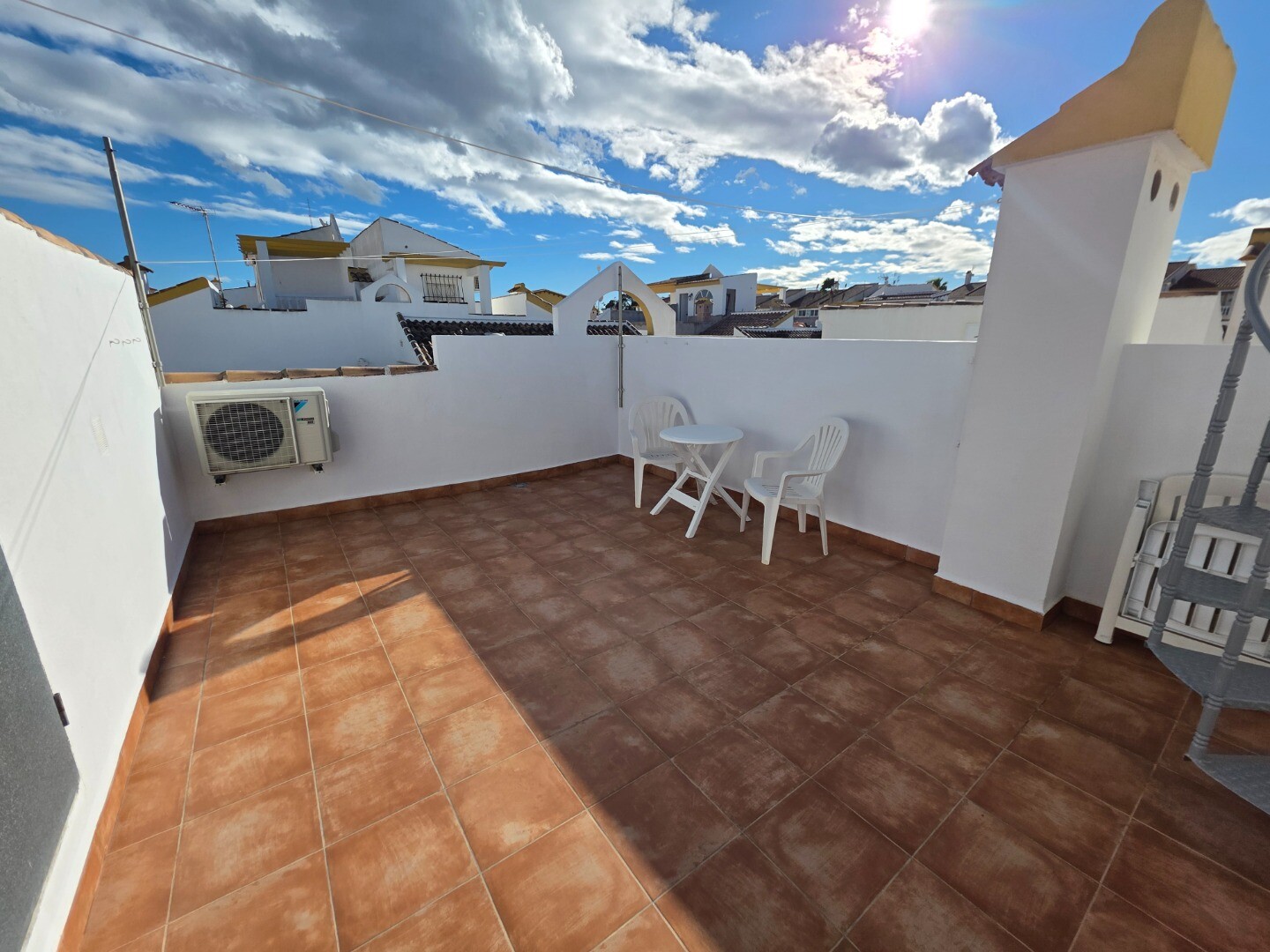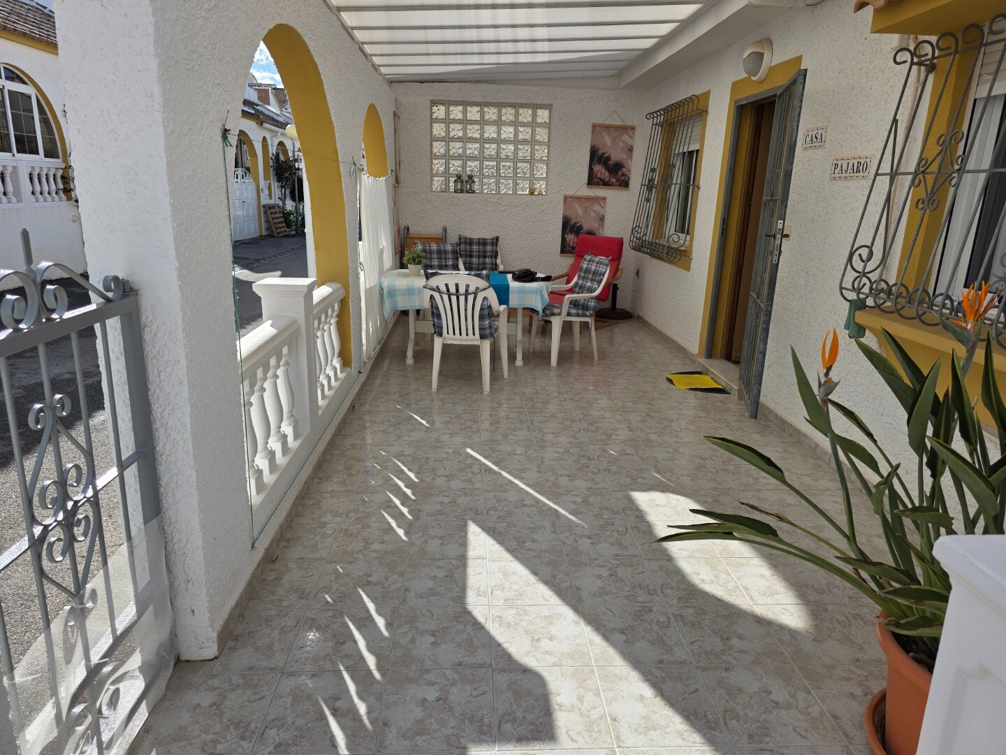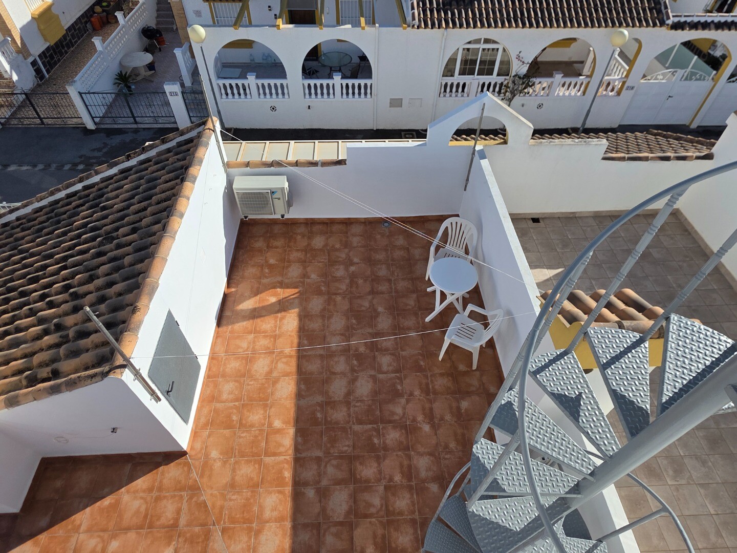 Detta hörnhus i bottenvåningen har två sovrum och två badrum. Ett gästhus har installerats på takterrassen, och ovanför detta gästhus finns ytterligare en takterrass som erbjuder panoramautsikt över hela dalen med delvis havsutsikt.