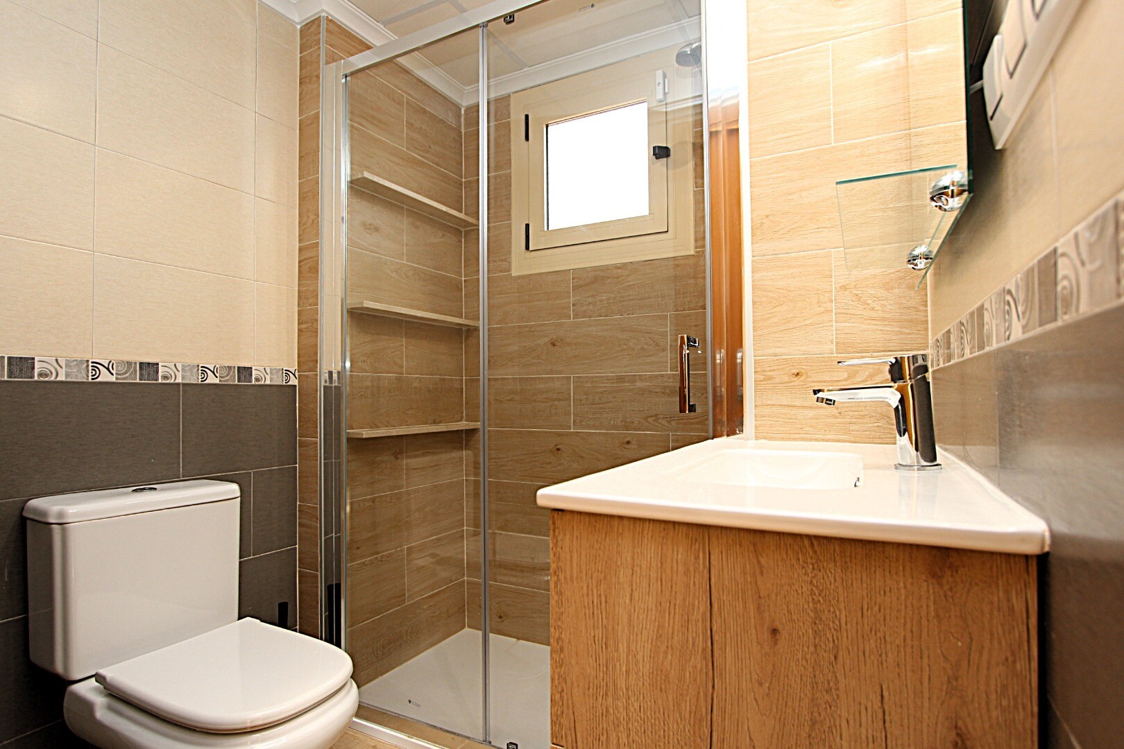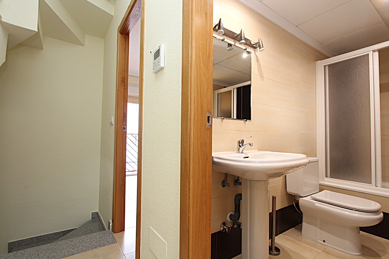 Fastigheten har tre dubbelrum, tre badrum, ett av dem med eget badrum, kanaliserad luftkonditionering och rymliga terrasser, en av dem med utsik...t över Medelhavet. I källaren finns ett stängt garage, med kapacitet för två fordon och förråd.