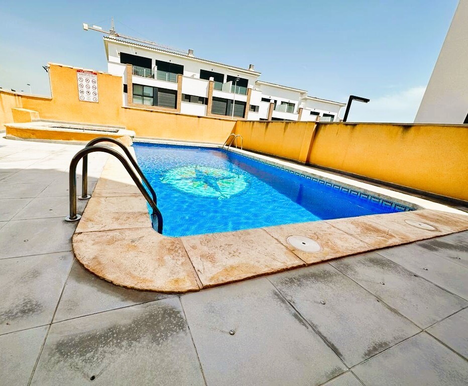 Vill du bo nära stranden och samtidigt njuta av solen och Medelhavsklimatet? Vi presenterar dig denna parhusvilla med privat solarium och gemensam pool, belägen i Guardamar del Segura, Alicante-provinsen.