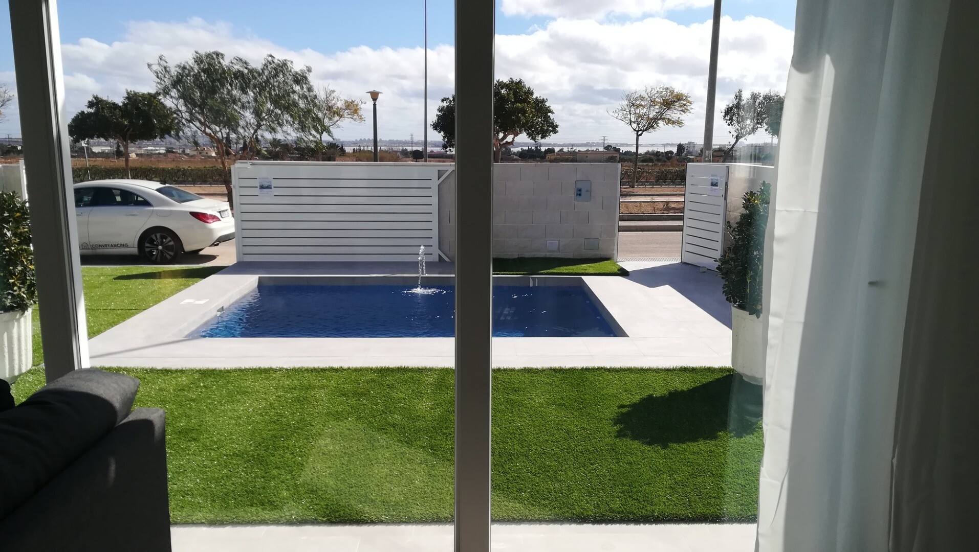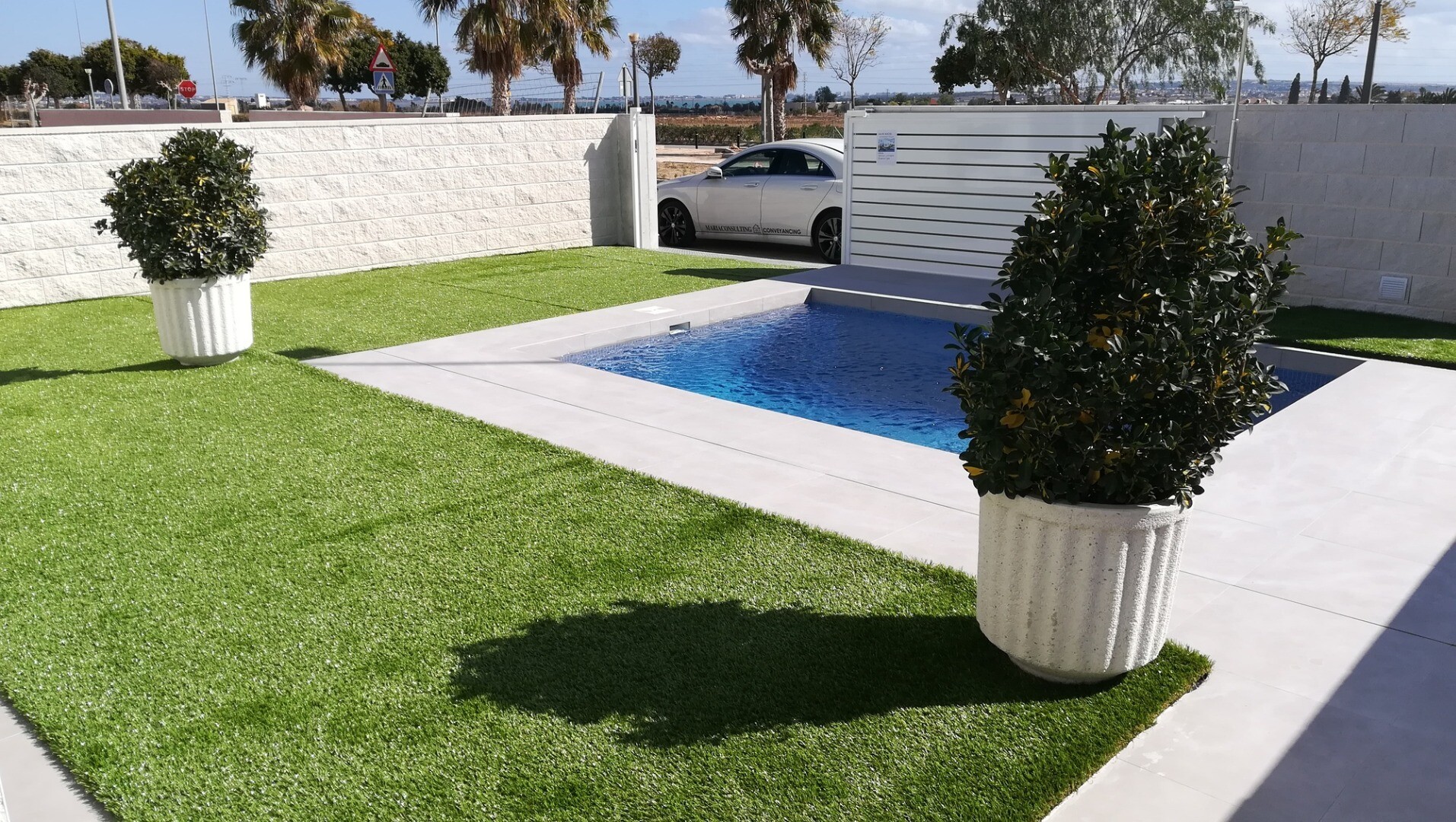 Vackra envåningsvillor med färdig pool, trädgård, solarium, elektriska fönsterluckor och motoriserad grindöppnare med panoramautsikt över horisonten och rosa saltsjöar i Torrevieja.