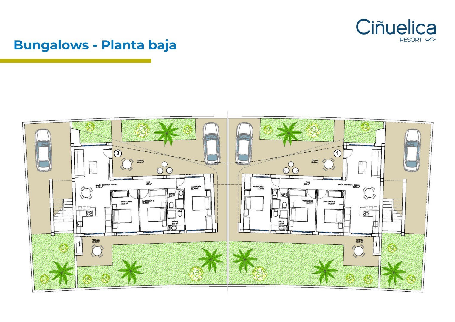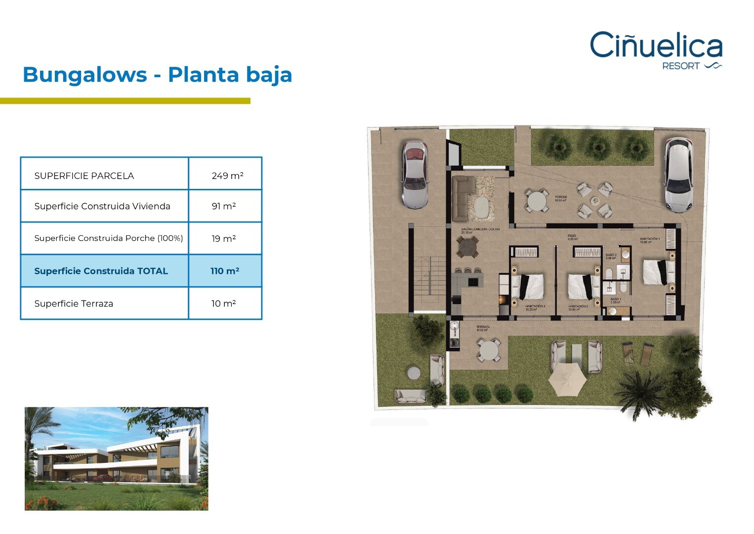 La Cinuelica Resort är ett residens som består av 4 flerfamiljshus med totalt 32 2-rumslägenheter, 32 3-rumslägenheter och 14 bungalower med 3 sovrum. Lägenheterna levereras med underjordisk parkeringsplats och förråd, köksmaskiner (kyl-frys-kombination, keramikhäll, ugn, mikrovågsugn, diskmaskin, tvättmaskin och fläkt), elektriska fönsterluckor, a...erotermisk vattenpanna, förinstallerad A/C genom luftkanaler och för taksolarier förinstallation för utekök och Jaccuzi. De gemensamma utrymmena inkluderar anlagda trädgårdar med 3 pooler och 2 uppvärmda jacuzzis, ett gym utomhus och en lekplats. Residenset ligger 1000 meter från stranden i Punta Prima och 500 meter från kommersiella centra med snabbköp, barer, restauranger, bankomat, affärer etc.