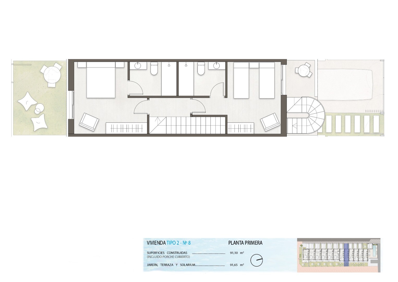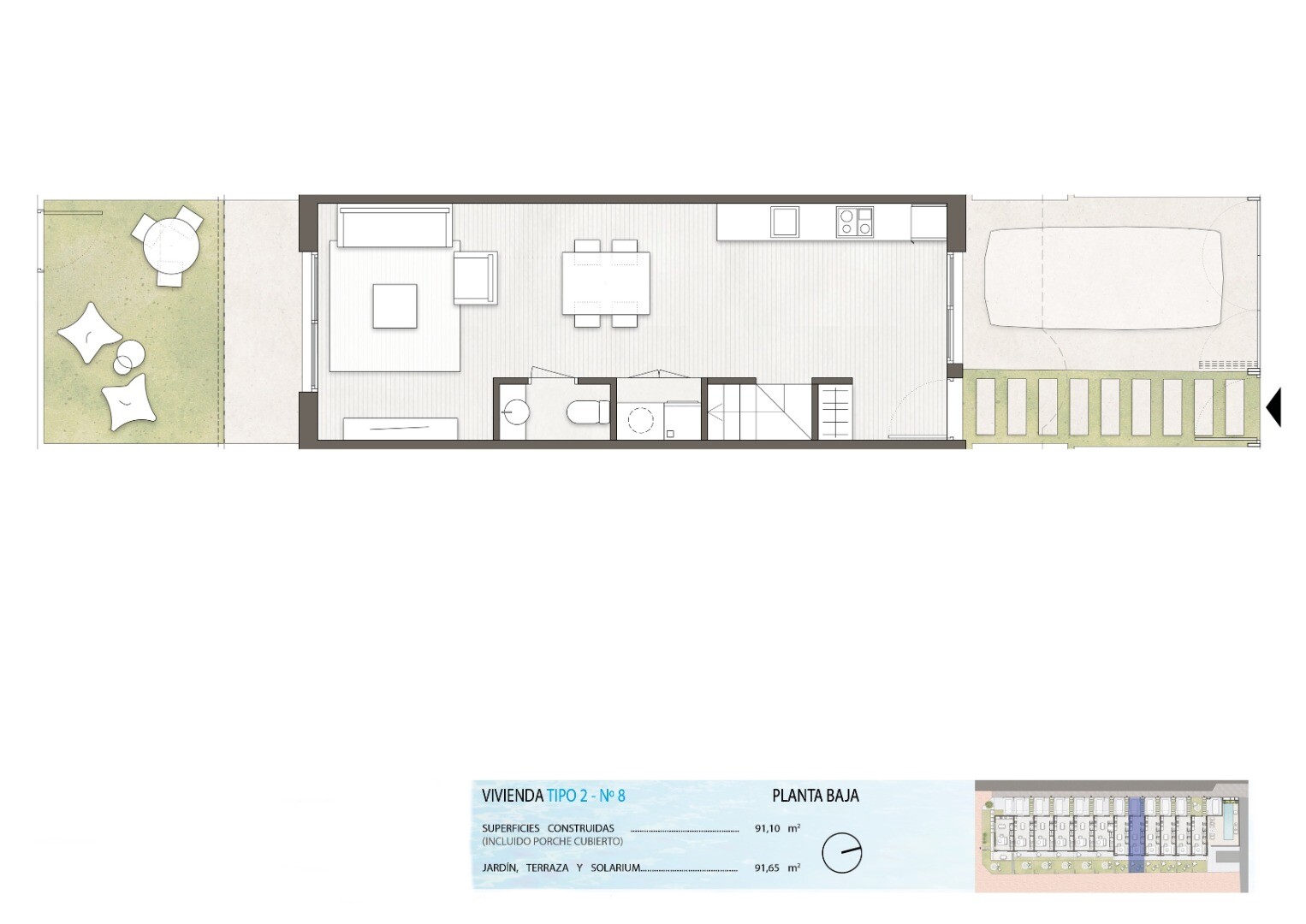 Litet radhusprojekt i Pilar de La Horadada inom gångavstånd från alla tänkbara bekvämligheter. Det finns ett val mellan radhus med 2 och 3 sovrum och en uppvärmd gemensam pool. Stranden Playa de las Higuericas nås via de vackert anlagda gång- och cykelvägarna i Baranco och ligger bara 2 km från denna bostad.