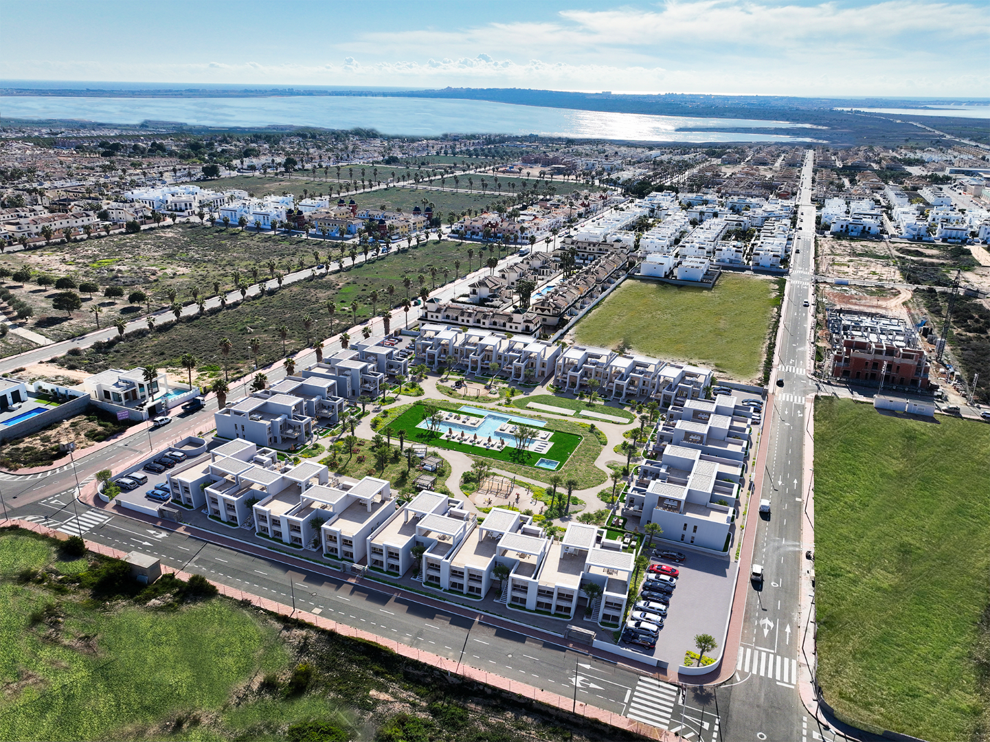 Bostadsområdet erbjuder gemensamma utrymmen med gemensam pool, stora trädgårdar och lekplats, perfekt för familjer eller de som söker lugn och livskvalitet på Costa Blanca.
