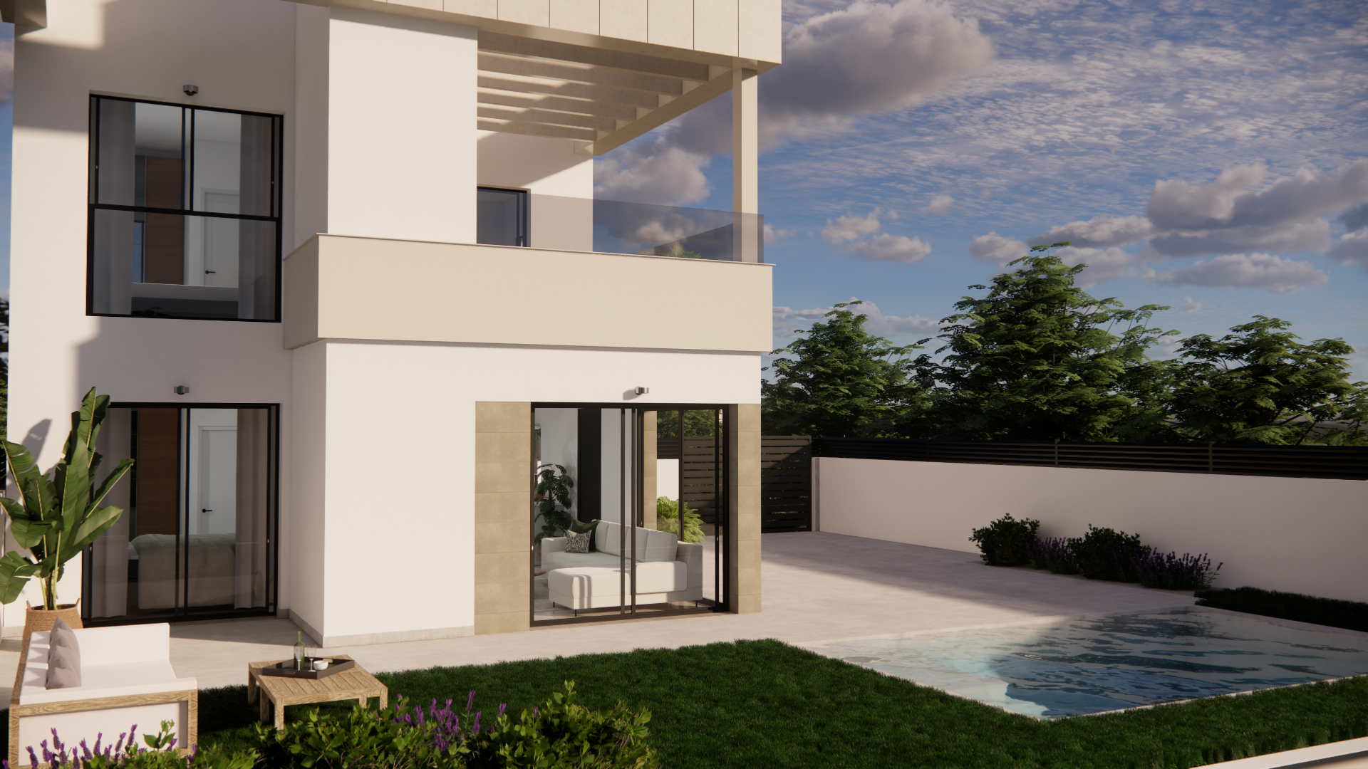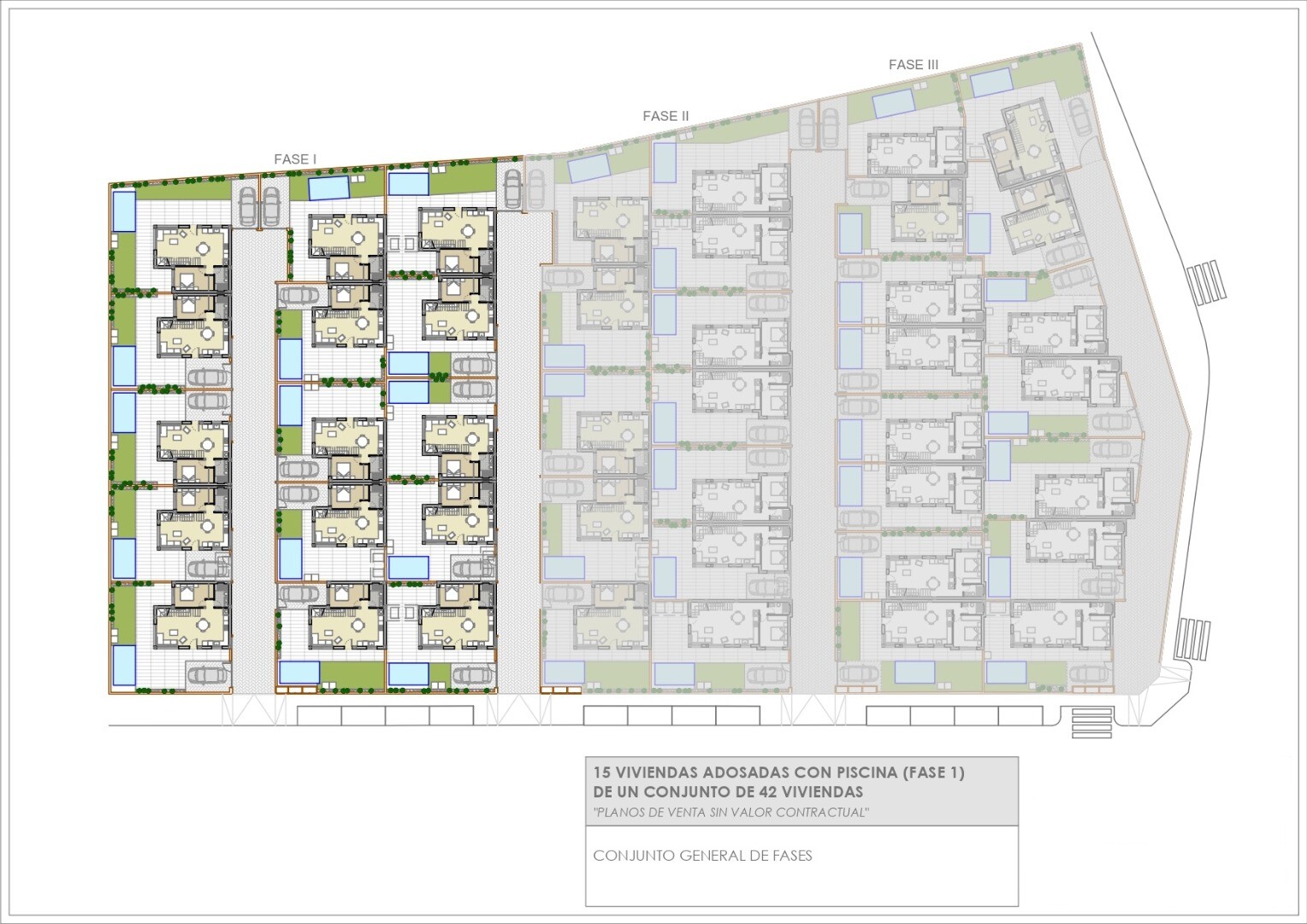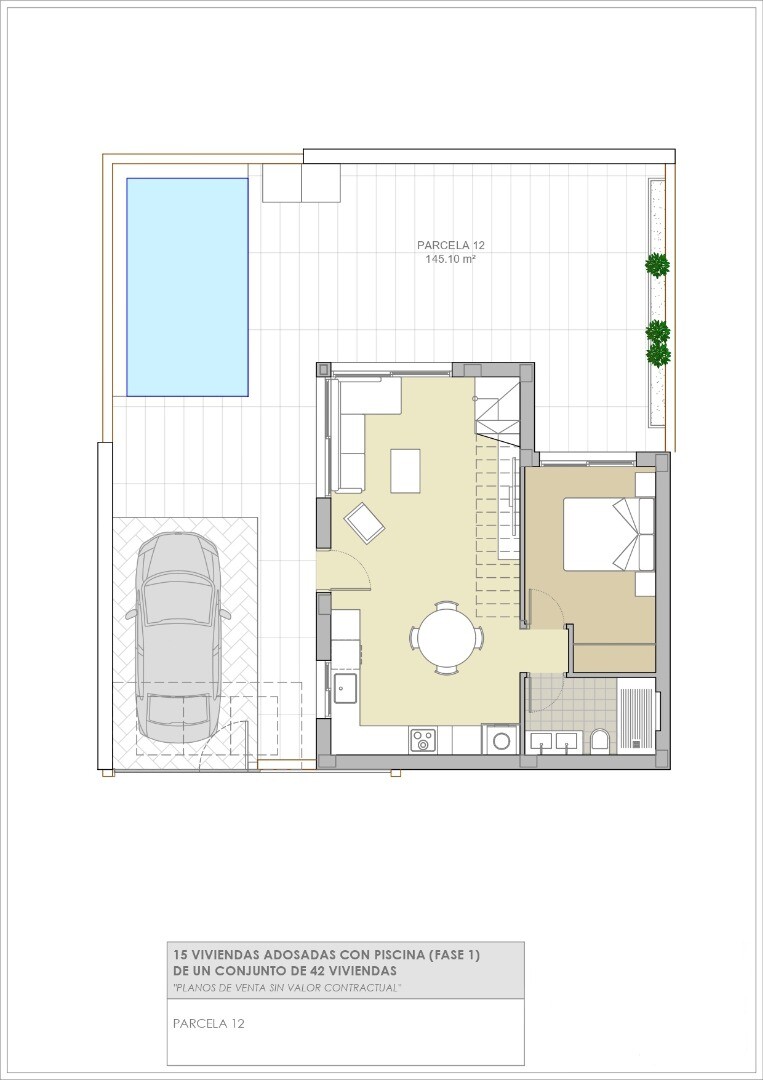 Fastigheterna levereras fullt utrustade med köksapparater, fullt utrustade badrum med golvvärme, elektriska jalusier i sovrummen, fullt färdiga inbyggda garderober med träklädsel, lådor och hängstänger, förinstallation av luftkonditionering via luftkanaler och installerad motor för bildörren. Som tillval kan ett solarium installeras på dessa fastig...heter för 14 900 € exklusive moms, vilket ger dig en vidsträckt utsikt över Torreviejas saltsjöar. I en första fas erbjuds fristående villor och parhusvillor (2 under ett tak). 3 faser byggs med totalt 42 villor. Vistabella Golf bör ses mer som en liten Pueblo med alla bekvämligheter såsom bankomat, stormarknad, olika barer och restauranger, apotek .... med fördelen att det är en helt säker zon med 1 ingång och utgång via en säkerhetsstolpe där varje bils registreringsskylt registreras elektroniskt. Kostnaderna för säkerheten bärs helt av Vistabella Golf själv. Härifrån går det en regelbunden busstrafik varje torsdag mellan Vistabella och La Zenia Shopping Boulevard. Det finns också kollektivtrafik mellan Orihuela och Torrevieja. Från Vistabella Golf kan alla kuststäder i Orihuela Costa nås på cirka 15 minuter med bil. Från Alicantes flygplats kan Vistabella nås via motorvägen AP7 (avgiftsfri) på bara 30 minuter med bil.