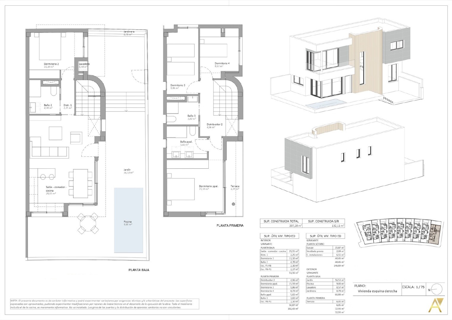 Dessa moderna, fristående villor ligger i det exklusiva bostadsområdet Los Jardines och erbjuder bostadsytor från 188 m² till 207 m², utformade för att säkerställa rymlighet, komfort och en funktionell planlösning i varje rum.