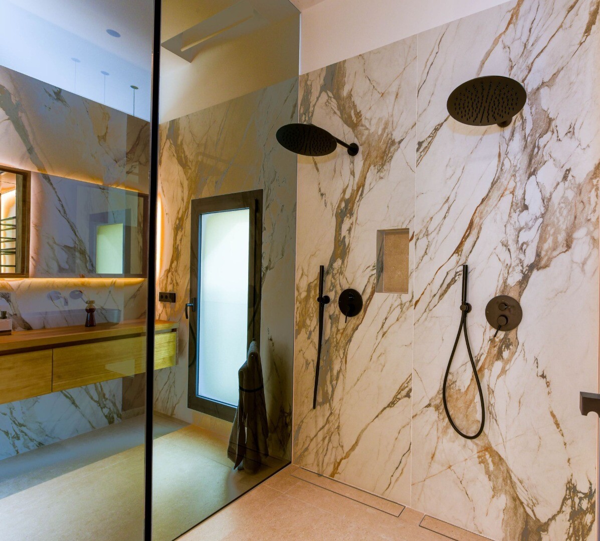 Basen jest podgrzewany i posiada zautomatyzowaną pokrywę ochronną, która utrzymuje ciepło przez cały rok, a także ochronę dla rodzin z dziećmi. Obok basenu znajduje się marmurowe miejsce do grillowania, w którym można spożywać posiłki na świeżym powietrzu przez cały rok.