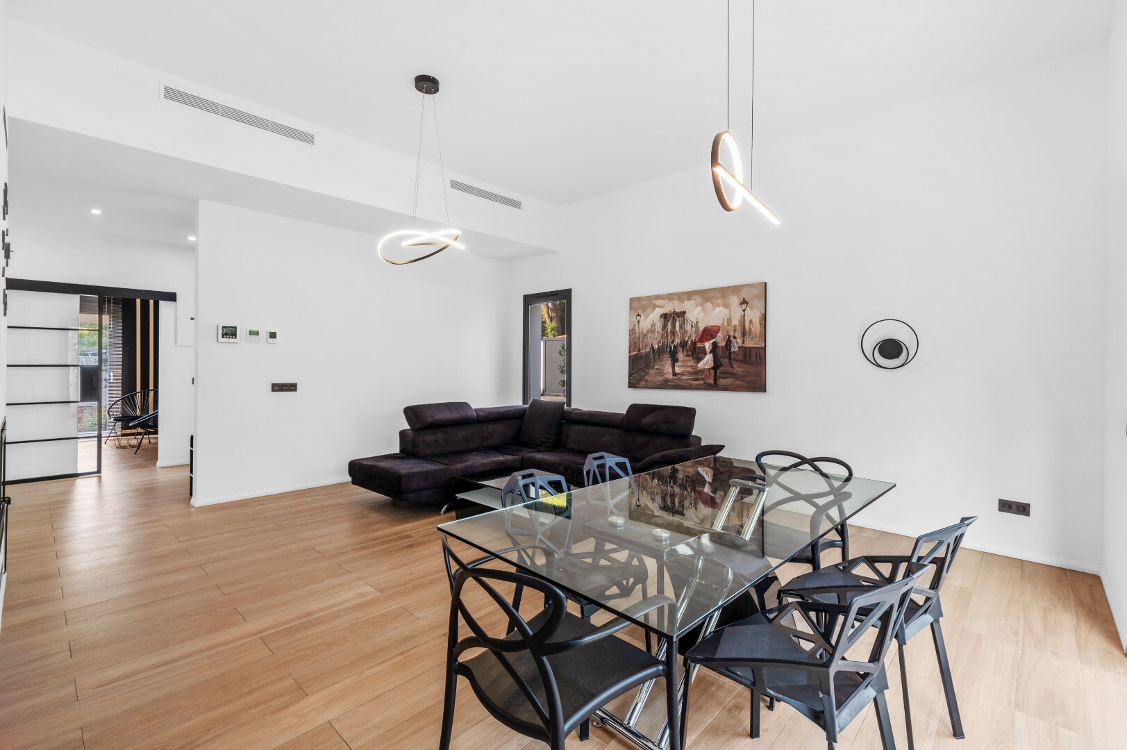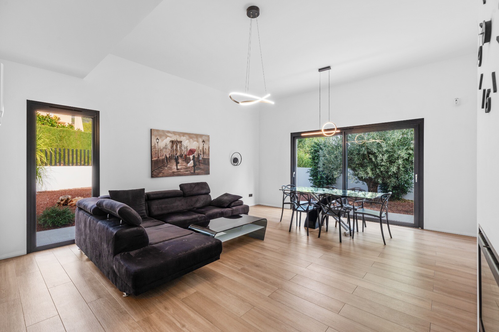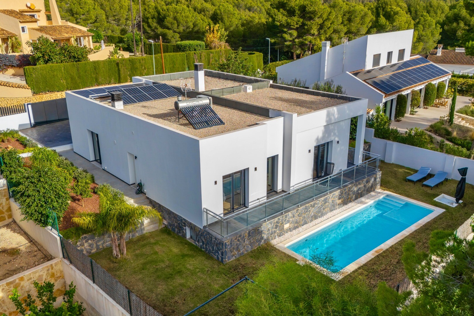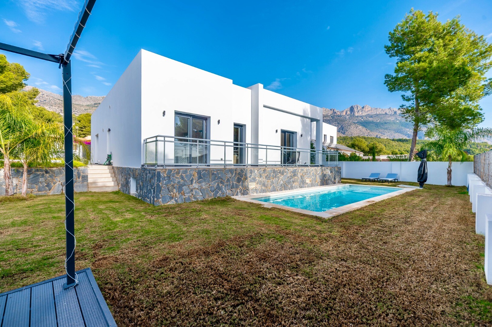 Byggd 2021 utmärker sig bostaden genom sina rena arkitektoniska linjer och sofistikerade estetik, med ljusa och harmoniska ytor som enkelt kan anpassas efter egen smak. Villan är uppförd i... ett plan på en rymlig tomt med sydläge och erbjuder fyra sovrum och tre badrum – idealiskt för både permanent boende och avkoppling.