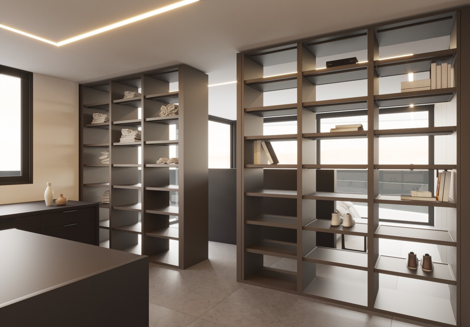 Huset har 564 m2 byggd, fördelat på bottenvåningen med en hall med dubbla höjder, ett sovrum med eget badrum, ett vardagsrum med matplats och ett 60 m2 utrustat k...ök med tillgång till terrassen, där poolen ligger och en toalett. På första våningen finns ett sovrum med eget badrum på 19 m2 och ett annat sovrum med eget badrum (med dusch och badkar) och omklädningsrum på 55 m2.