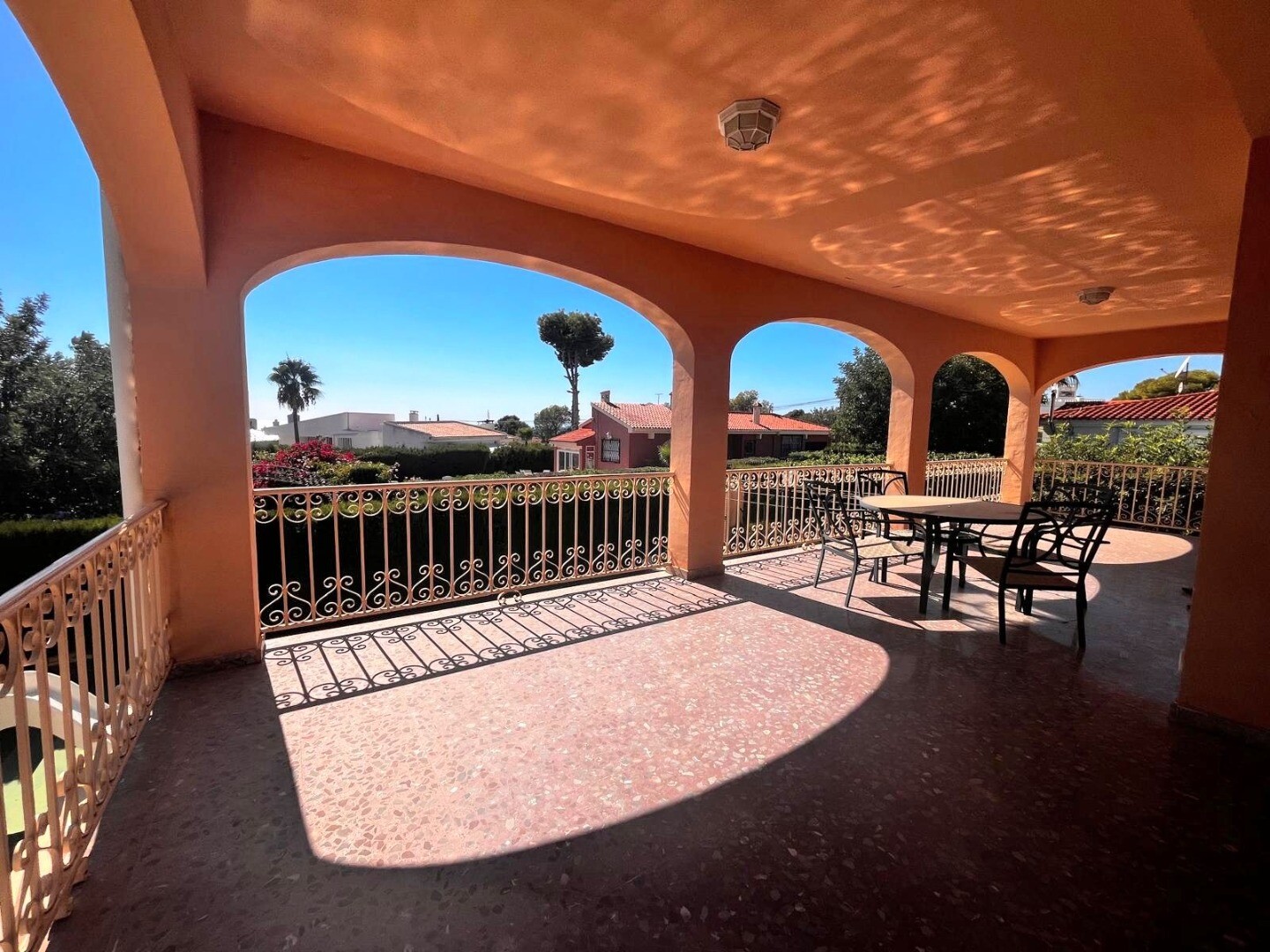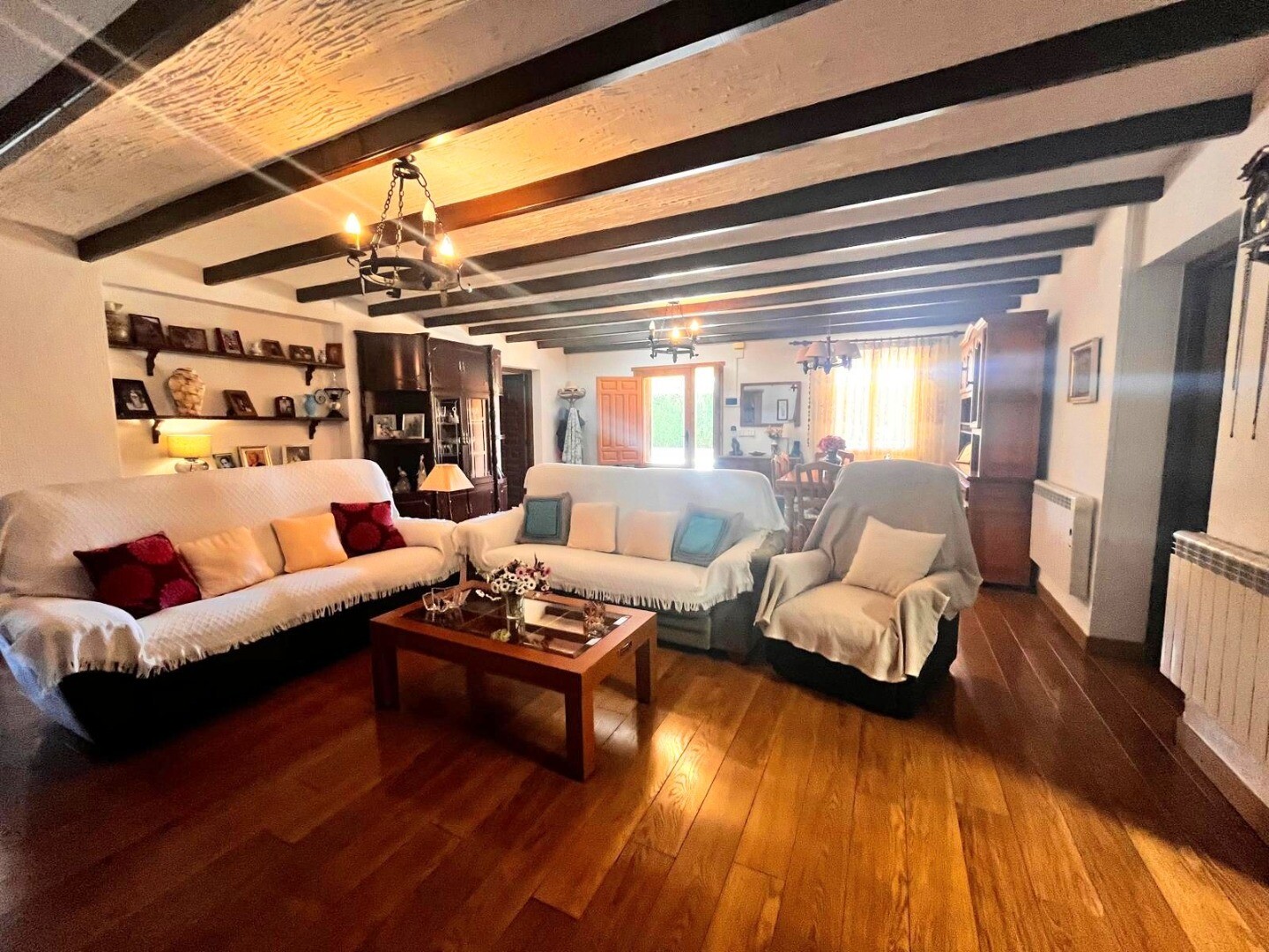 HUVUDHUS: 3 sovrum (ett används för närvarande som omklädningsrum), 2 badrum, separat kök, stort vardagsrum med öppen spis och tillgång till en rymlig terrass med utsikt och direkt tillgång till solarium.