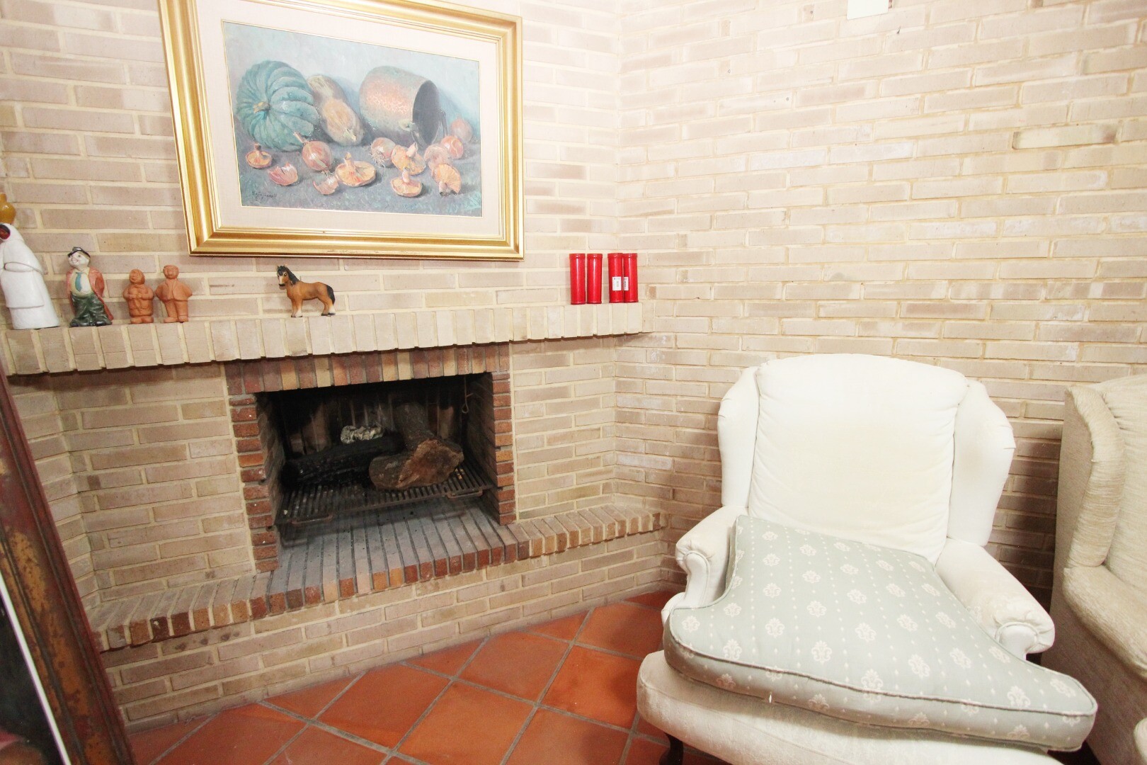 Det finns ett privat garage på nedre våningen tillsammans med en toalett, stort bibliotek/sovrum med öppen spis.