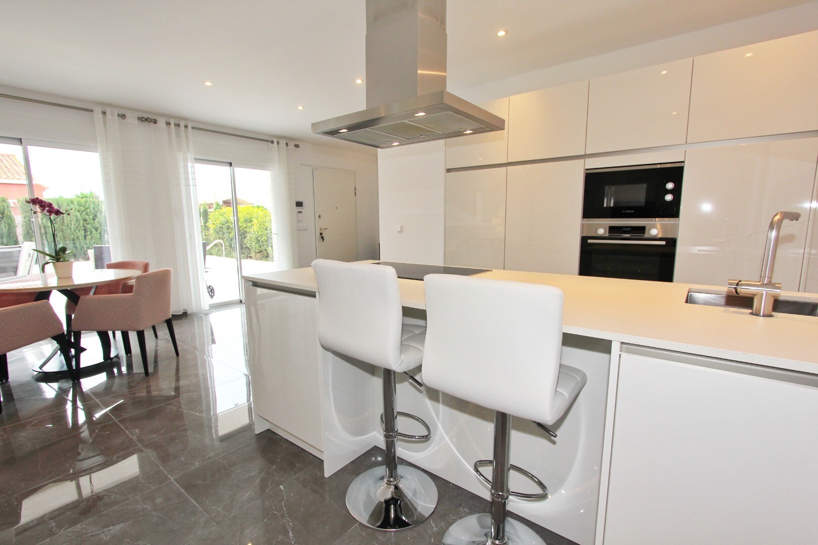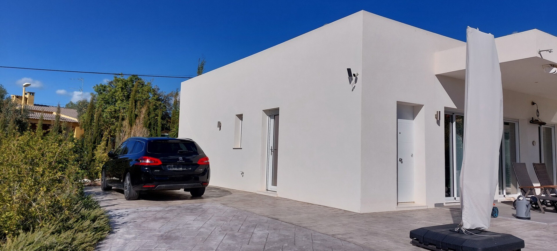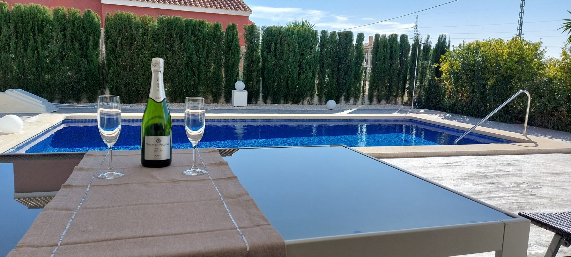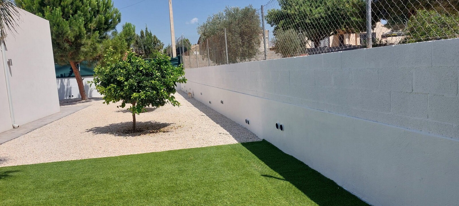 Välkommen till din lantliga fristad! Denna stilfulla villa på ett plan har eleganta moderna ytskikt och ett överflöd av naturligt ljus som dansar genom de generösa fönstren från golv till tak. Njut av gourmetköket, en fristad för blivande kockar, och njut av ditt morgonkaffe på den privata terrassen vid poolen, där utsikten över trädgården och pool...en utspelar sig framför dina ögon. Inbäddat i en lantlig by, är denna privata villa din inkörsport till en lugn livsstil, omgiven av din egen stora trädgård med frodig vegetation och fruktträd, en idealisk plats att äta "al fresco" eller smutta på cocktails vid poolen! Staden Mutxamel ligger bara 7 minuters bilresa bort och stranden 10 minuter. Mutxamel och Busot har en sprudlande "spansk by"-känsla och har många lokala hantverksbutiker, märkesvaror och frukt- och grönsaksmarknader varje vecka!.