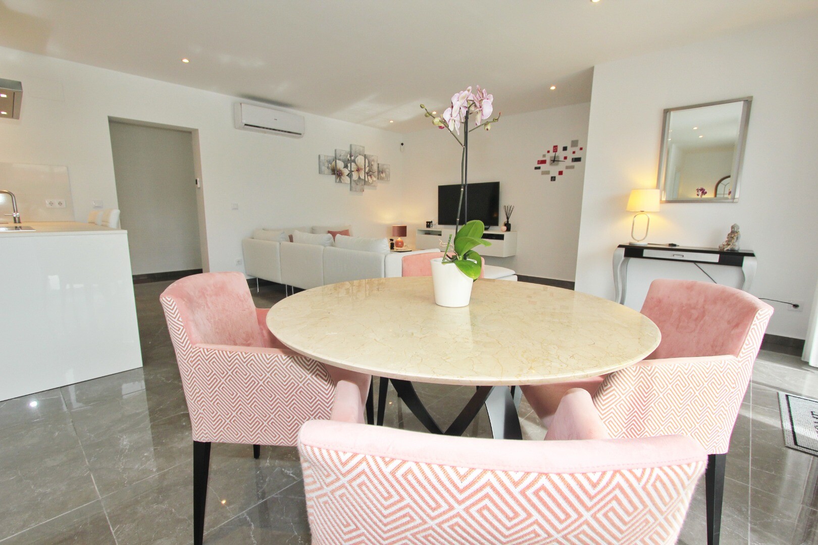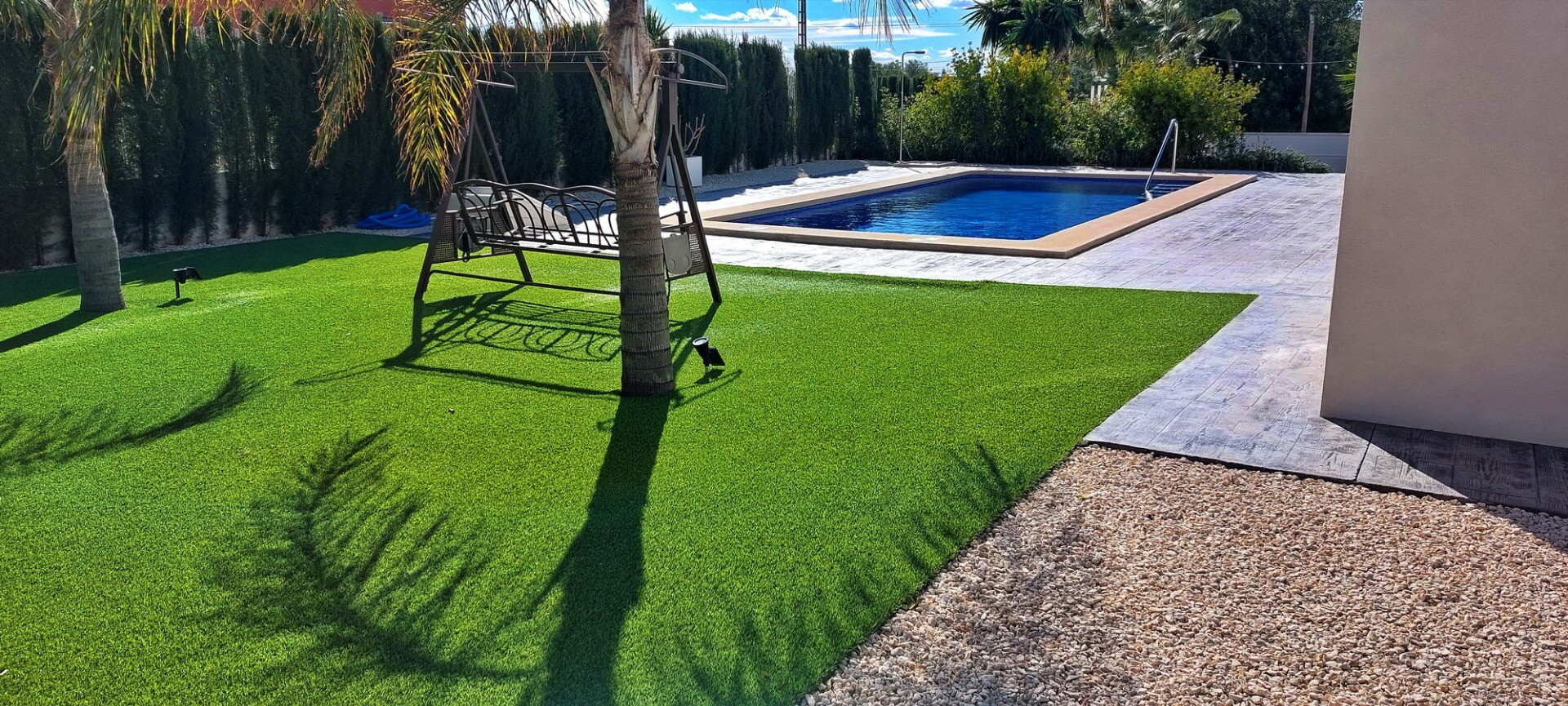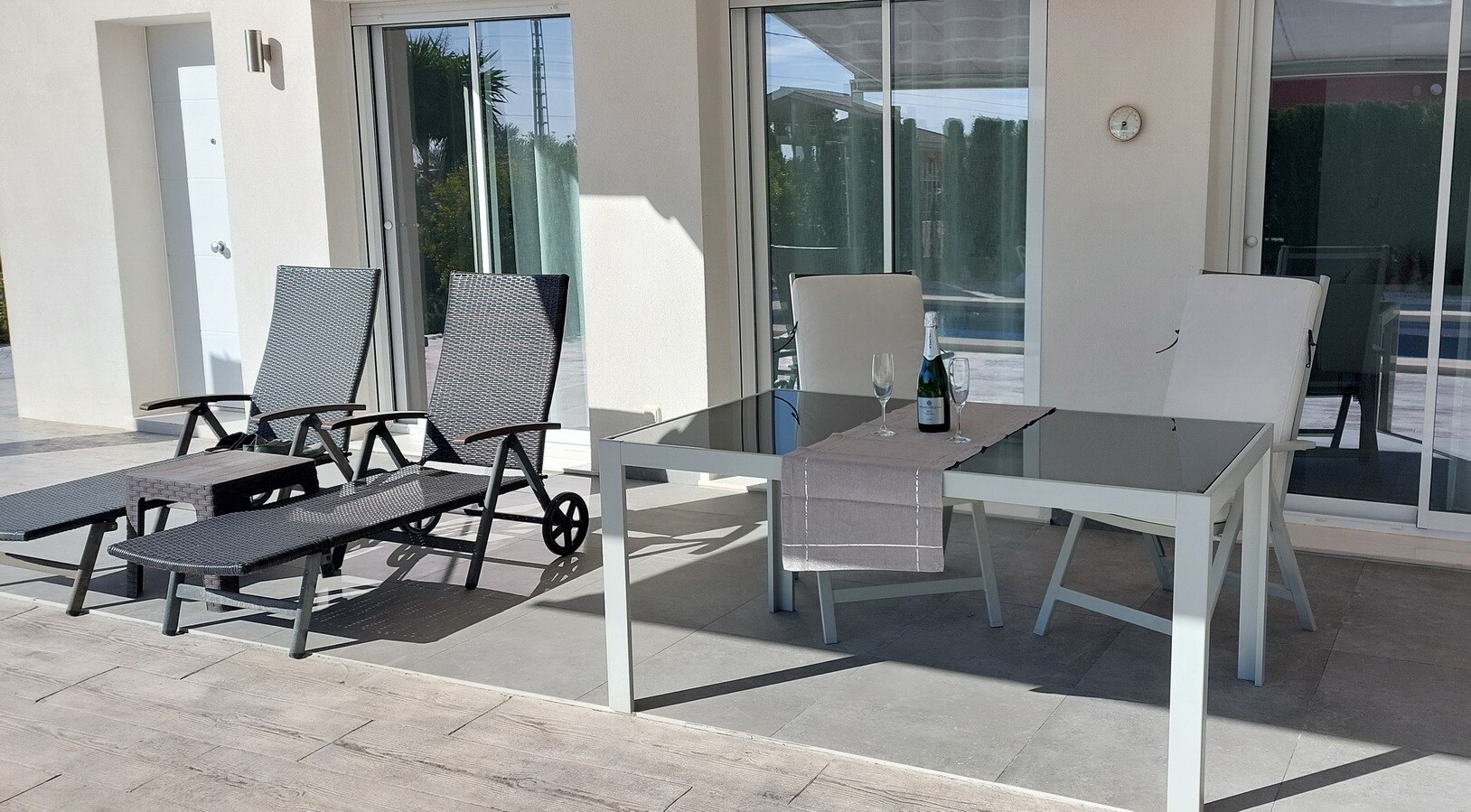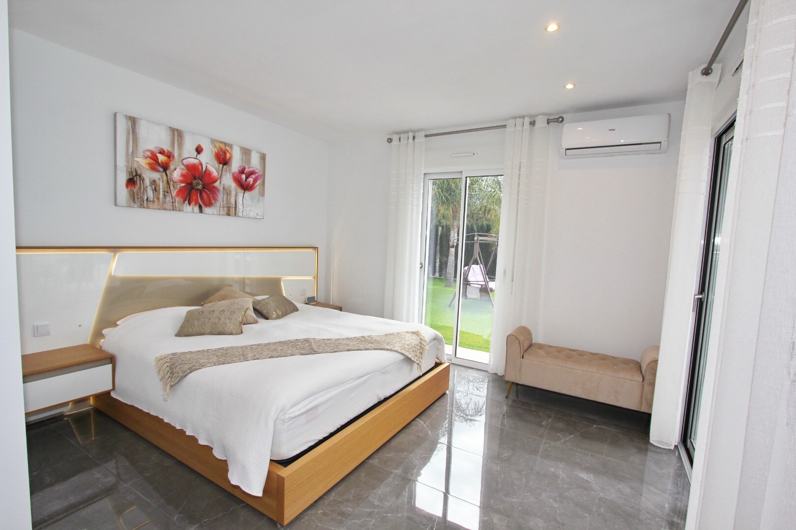 Välkommen till din lantliga fristad! Denna stilfulla villa på ett plan har eleganta moderna ytskikt och ett överflöd av naturligt ljus som dansar genom de generösa fönstren från golv till tak. Njut av gourmetköket, en fristad för blivande kockar, och njut av ditt morgonkaffe på den privata terrassen vid poolen, där utsikten över trädgården och pool...en utspelar sig framför dina ögon. Inbäddat i en lantlig by, är denna privata villa din inkörsport till en lugn livsstil, omgiven av din egen stora trädgård med frodig vegetation och fruktträd, en idealisk plats att äta "al fresco" eller smutta på cocktails vid poolen! Staden Mutxamel ligger bara 7 minuters bilresa bort och stranden 10 minuter. Mutxamel och Busot har en sprudlande "spansk by"-känsla och har många lokala hantverksbutiker, märkesvaror och frukt- och grönsaksmarknader varje vecka!.