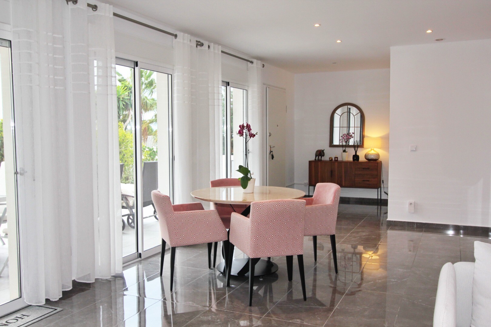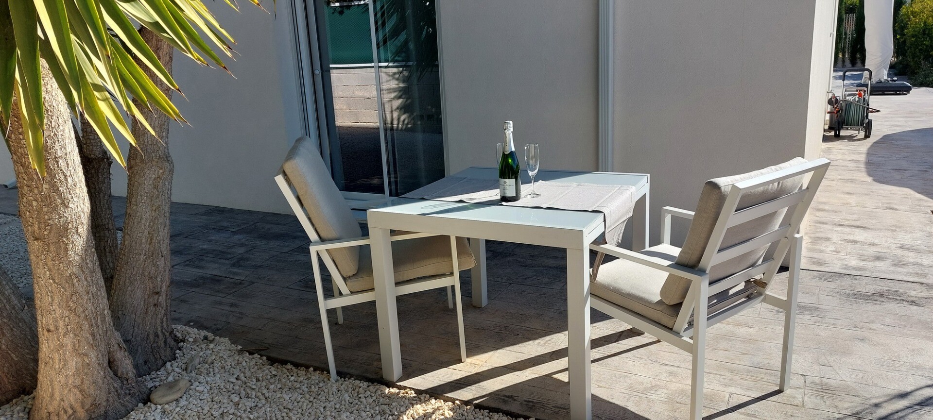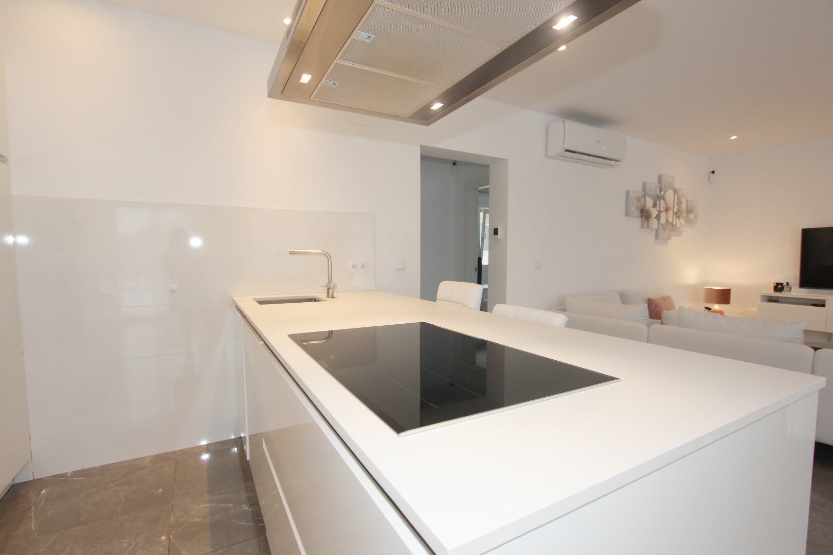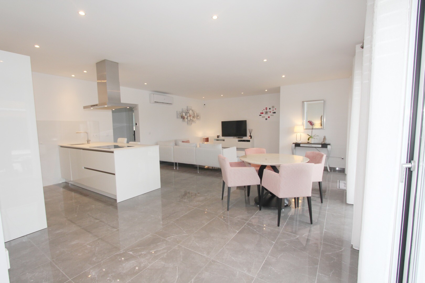Välkommen till din lantliga fristad! Denna stilfulla villa på ett plan har eleganta moderna ytskikt och ett överflöd av naturligt ljus som dansar genom de generösa fönstren från golv till tak. Njut av gourmetköket, en fristad för blivande kockar, och njut av ditt morgonkaffe på den privata terrassen vid poolen, där utsikten över trädgården och pool...en utspelar sig framför dina ögon. Inbäddat i en lantlig by, är denna privata villa din inkörsport till en lugn livsstil, omgiven av din egen stora trädgård med frodig vegetation och fruktträd, en idealisk plats att äta "al fresco" eller smutta på cocktails vid poolen! Staden Mutxamel ligger bara 7 minuters bilresa bort och stranden 10 minuter. Mutxamel och Busot har en sprudlande "spansk by"-känsla och har många lokala hantverksbutiker, märkesvaror och frukt- och grönsaksmarknader varje vecka!.