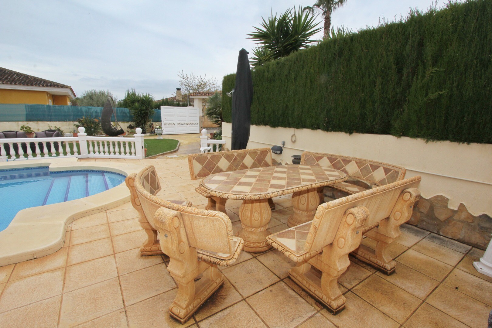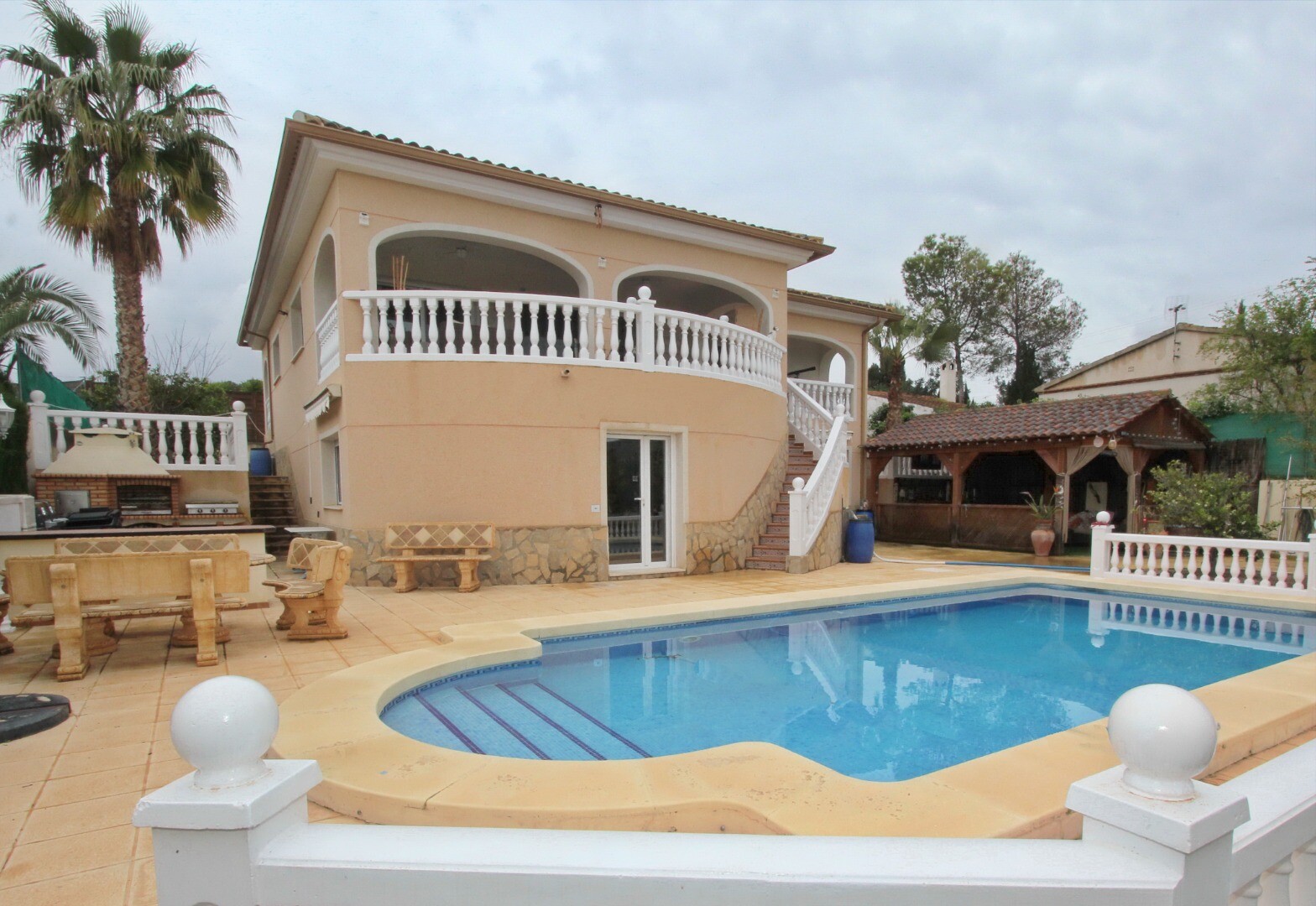Belägen på en stor tomt med fruktträd, flera chill-out-områden och b...åde garage och carport, är fastigheten redo att flyttas in och njutas omedelbart.