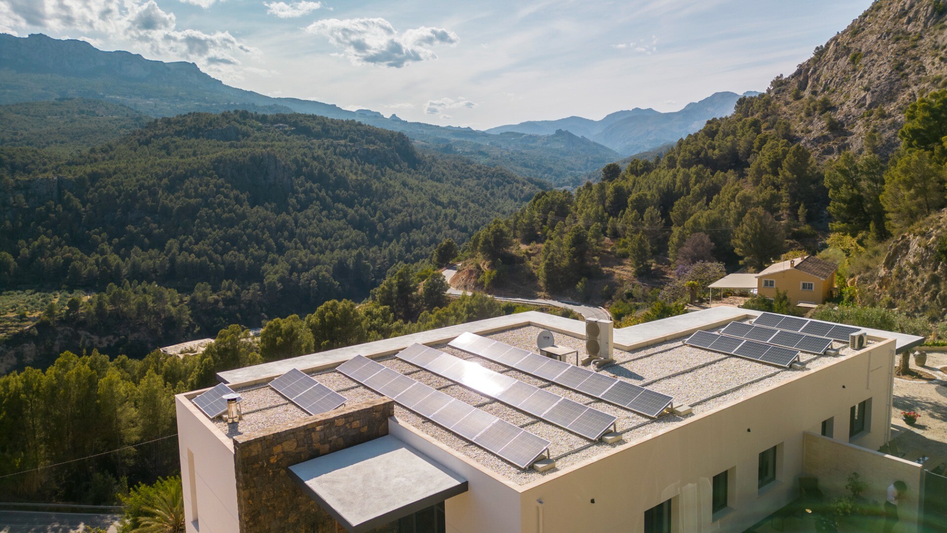Inbäddad i Guadalest-dalens spektakulära naturlandskap erbjuder denna exceptionella villa en sällsynt kombination av avskildhet, panoramautsikt och hållbart boende på en av de mest natursköna platserna på Costa Blanca.