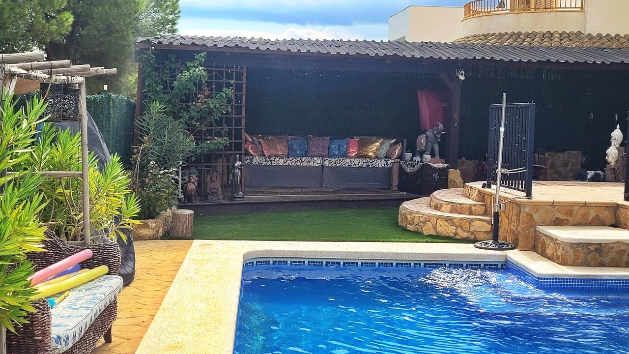 Stig ut för att hitta din e...gen privata oas - en orörd pool och chill-out-zon - perfekt för sommarsammankomster eller lugna kvällar under stjärnorna. Fastighetens genomtänkta design garanterar största möjliga avskildhet, så att du kan varva ner i lugn och ro.