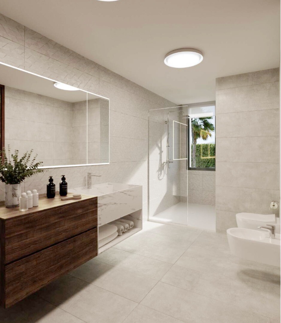 Villorna har 4 sovrum, 5 badrum, 2 tvättstugor och en öppen planlösning med vardagsrum, matplats och kök. Utanför finns en täckt veranda, en pool med havsutsikt, stora trädgårdsområden och två terrasser på första våningen.