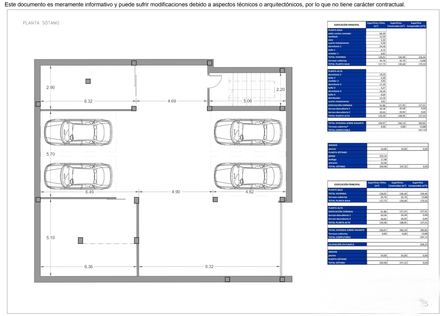 Den byggda ytan för varje villa är över 550 m² och tomtytan är cirka 900 m². Varje hem har 300 m² på sina två övre våningar och ytterligare 200 m² halvkällarvåning som används som garage.