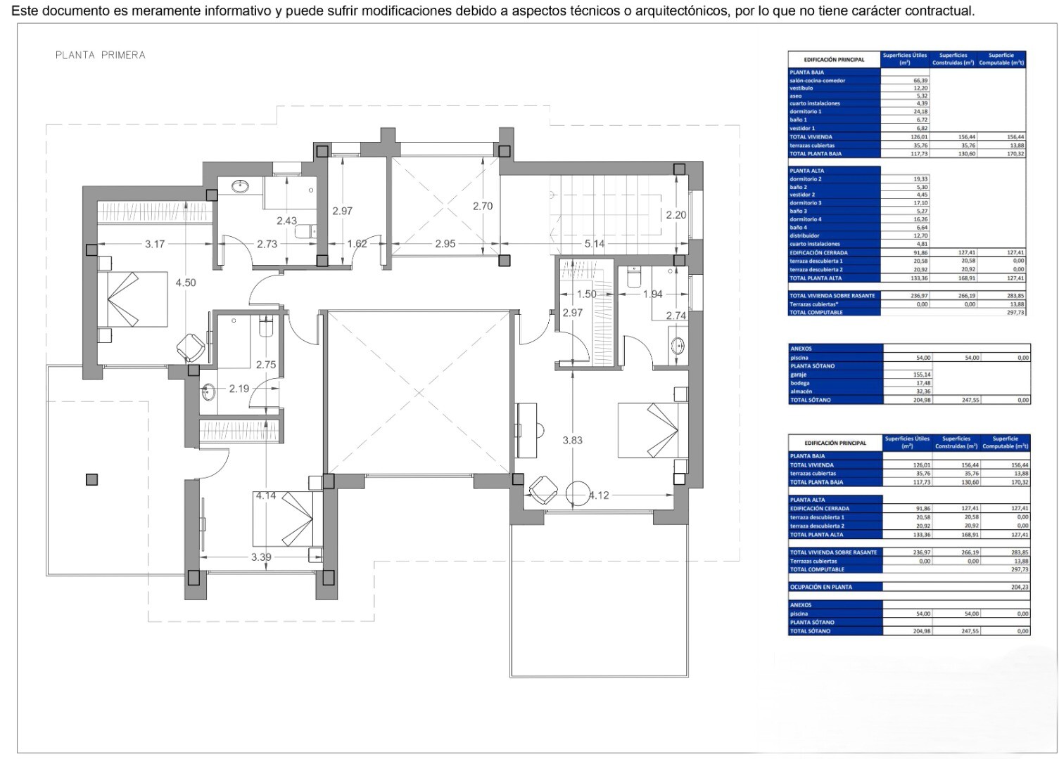 Den byggda ytan för varje villa är över 550 m² och tomtytan är cirka 900 m². Varje hem har 300 m² på sina två övre våningar och ytterligare 200 m² halvkällarvåning som används som garage.