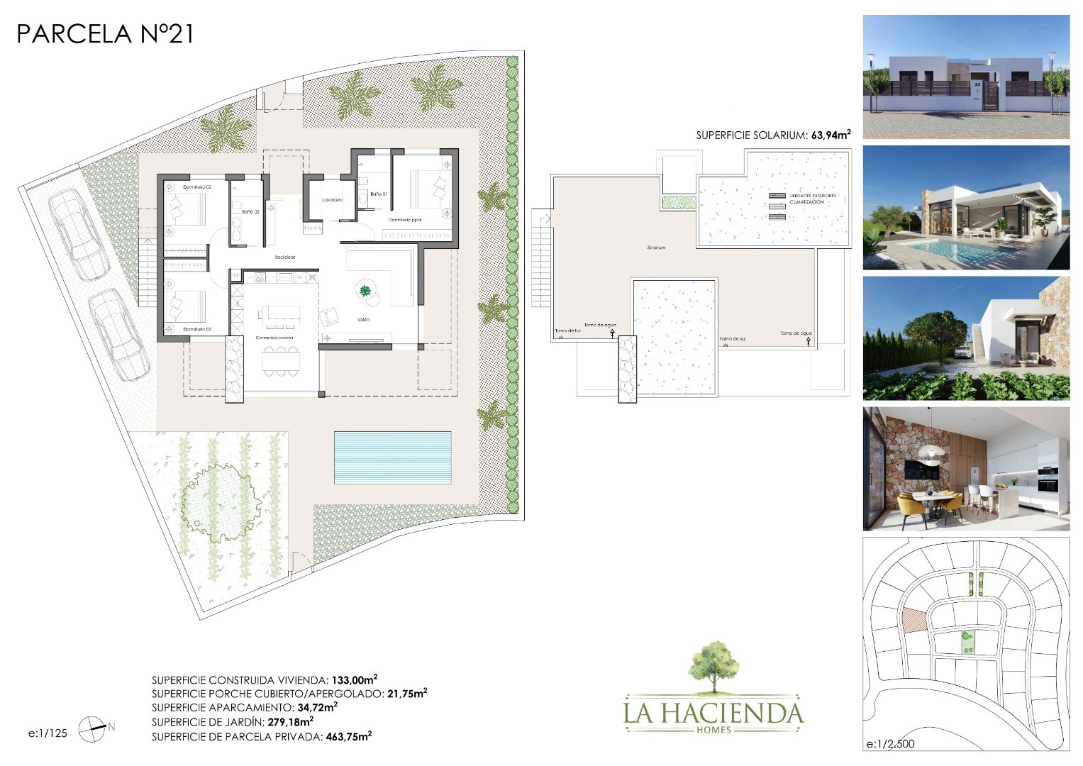 Denna villa erbjuder den perfekta blandningen av modern design, komfort och natur. Dessa unika villor med 3 sovrum och 2 badrum samt en privat pool på 2,4 x 6 m är utformade för att fungera som antingen permanentboende eller fritidshus. De är byggda på tomter från 436 m² till 600 m² och har en täckt terrass på 21 m², en parkeringsplats och ett takt...errass där du kan njuta av den vidsträckta utsikten över Hacienda del Alamo-anläggningen.
