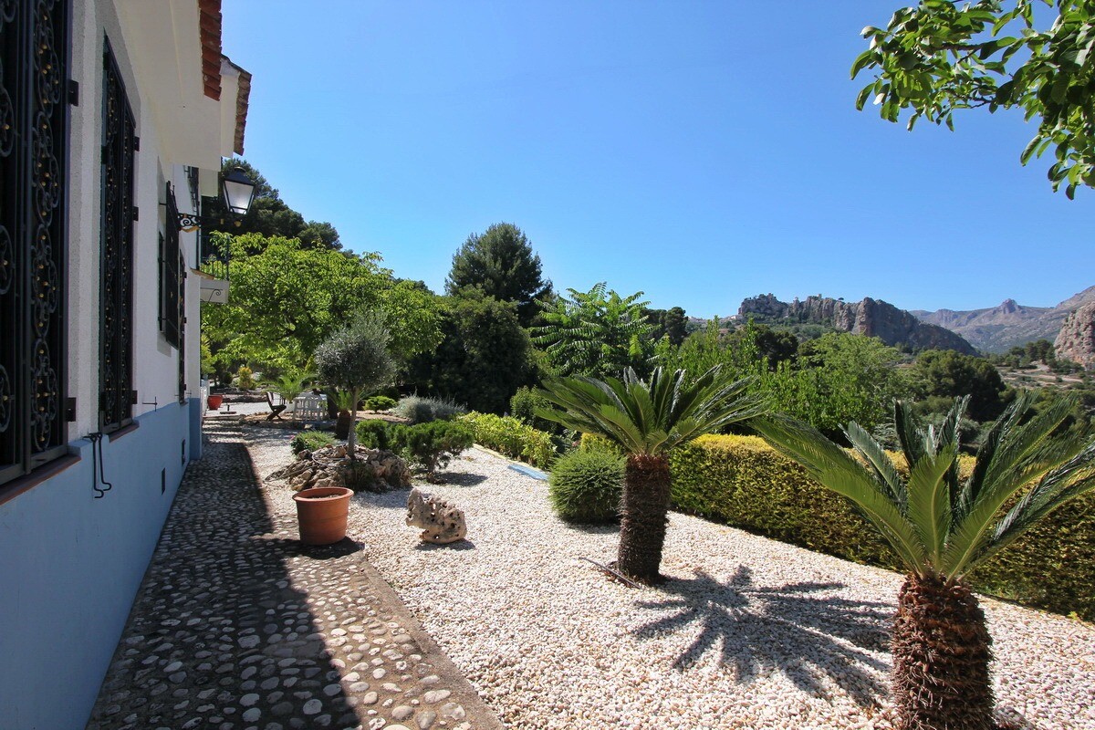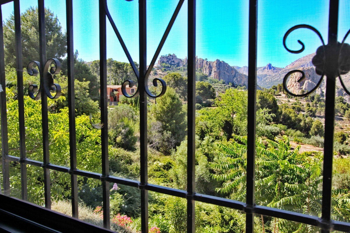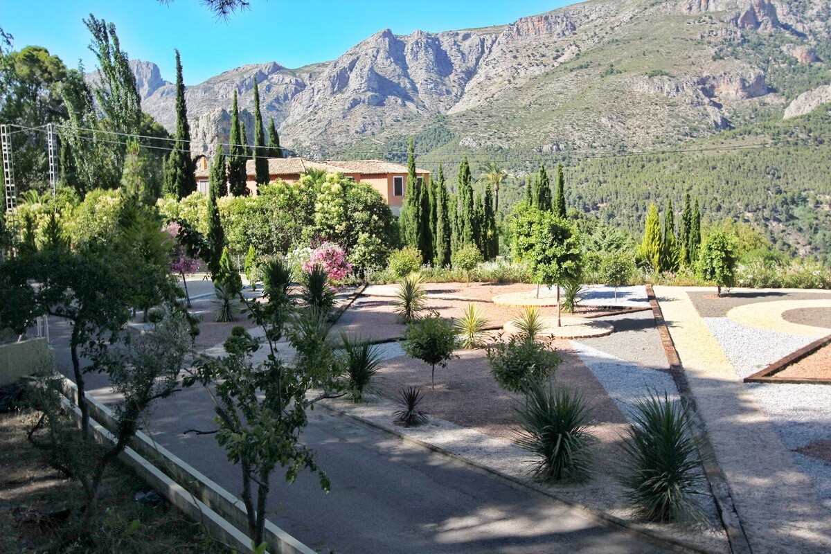 Fastigheten ligger i en vidsträckt trädgård på över 5900 m² och har direkt utsikt över de omgivande bergen och det medeltida slottet i Guadalest.