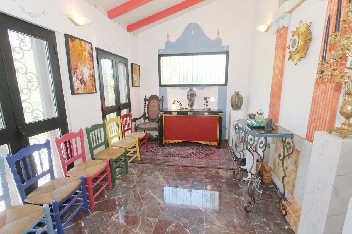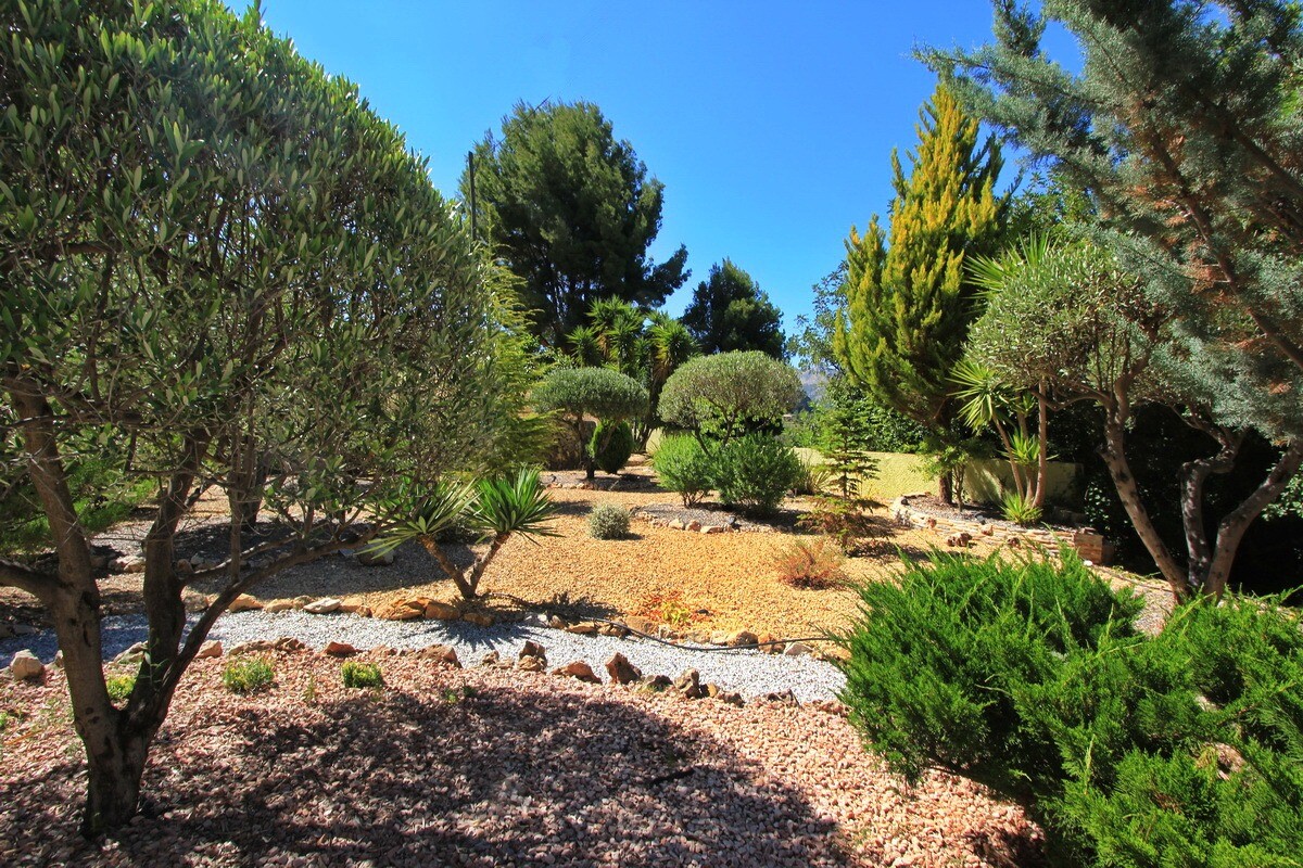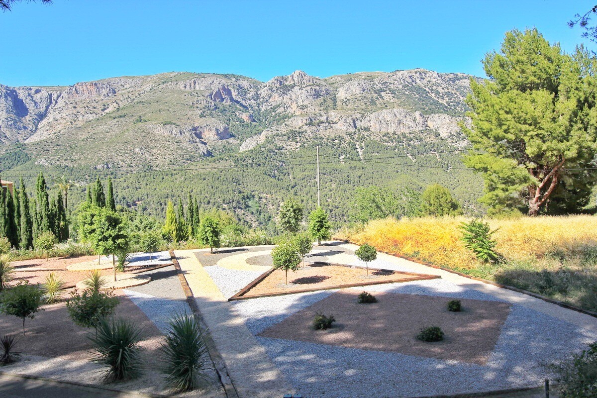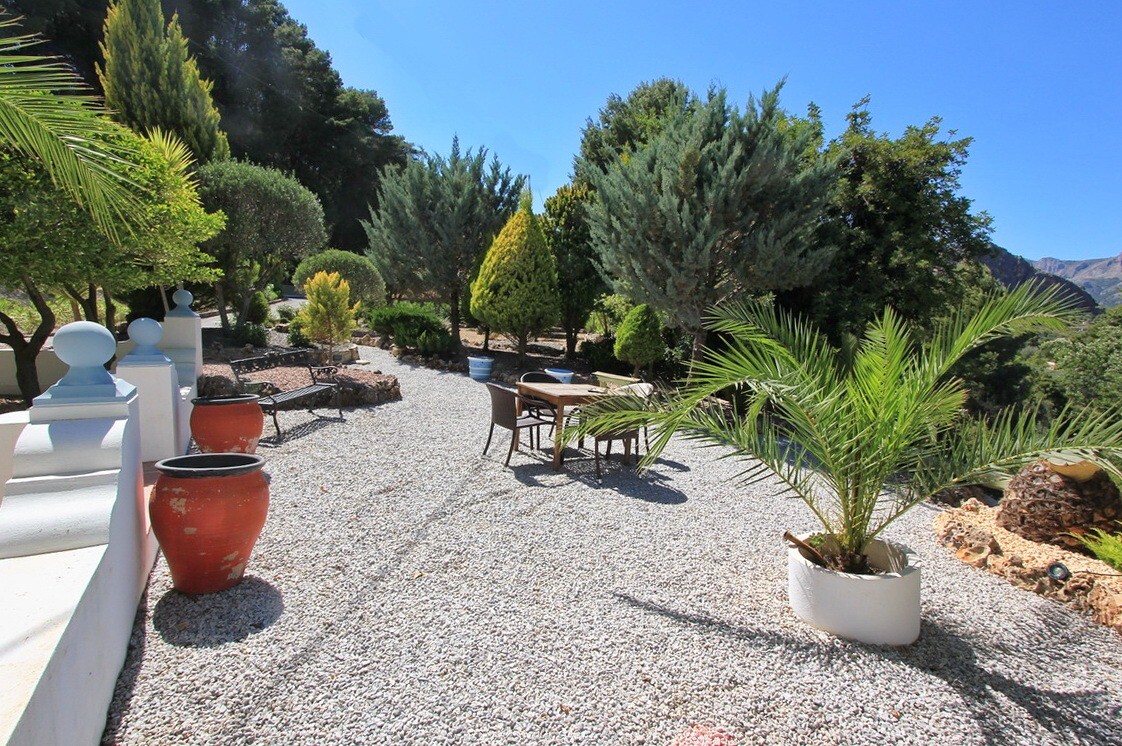 Fastigheten ligger i en vidsträckt trädgård på över 5900 m² och har direkt utsikt över de omgivande bergen och det medeltida slottet i Guadalest.