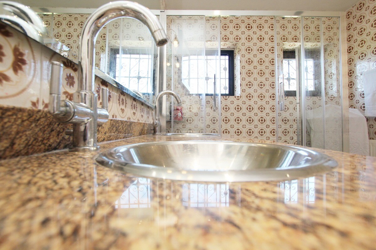 Huvudhuset fördelas enligt följande: Entréhall. Kök, tvättstuga, kontor (sovrum 1), matsal..., rum (sovrum 2), stort vardagsrum med uteservering från 1500-talet. 1: a våningen: Master sovrum med stort badrum, 2 dubbelrum och familj badrum.
