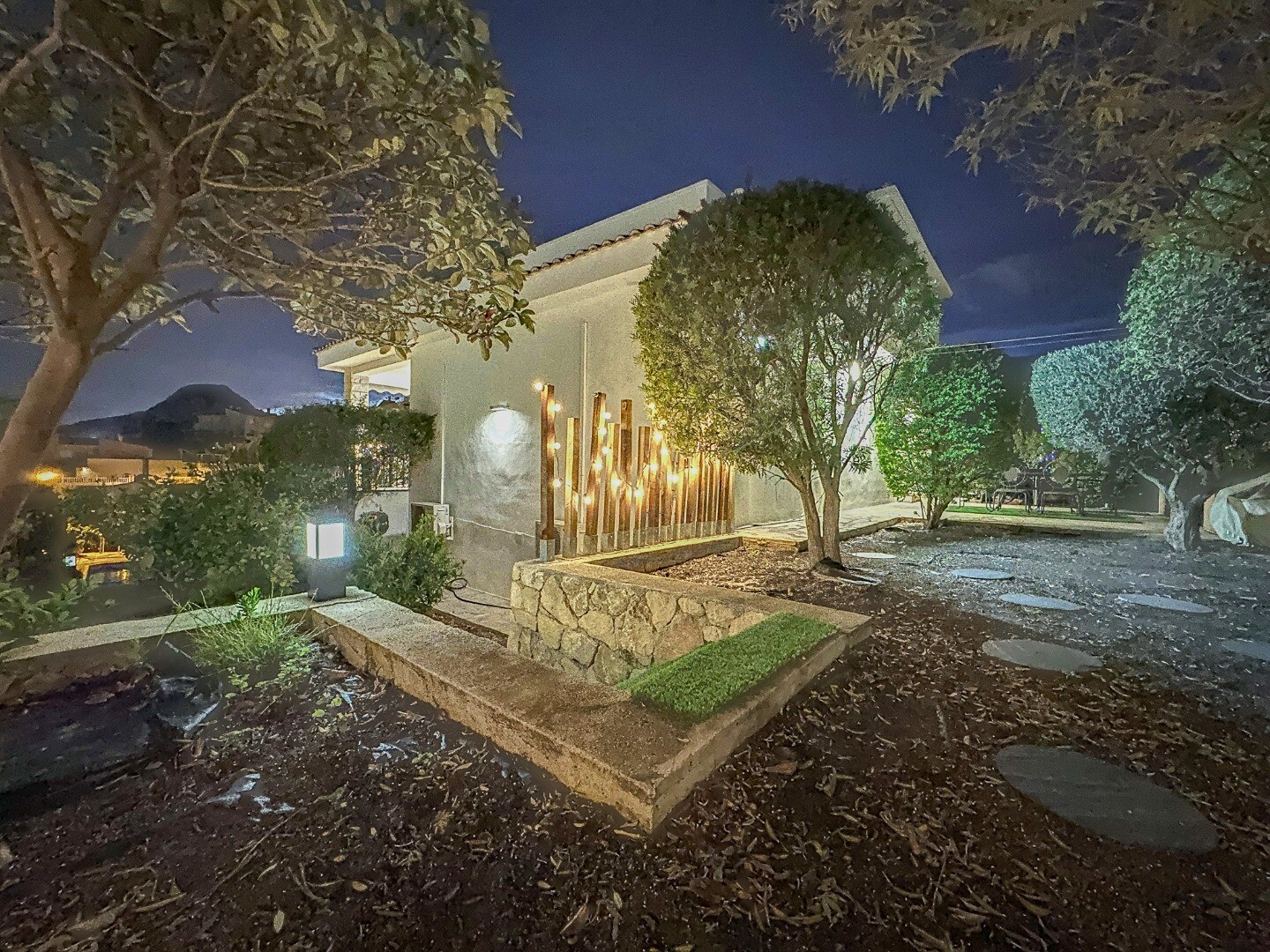 När du kliver in i denna anmärkningsvärda fastighet möts du av frodiga trädgårda...r prydda med LED-belysning som kastar ett mjukt sken hela kvällen och skapar en förtrollande atmosfär perfekt för avkoppling eller underhållning. Det vackert utformade utomhusutrymmet har en fantastisk privat saltvattenpool som inbjuder dig att ta ett uppfriskande dopp medan du är omgiven av lugn landskapsarkitektur.