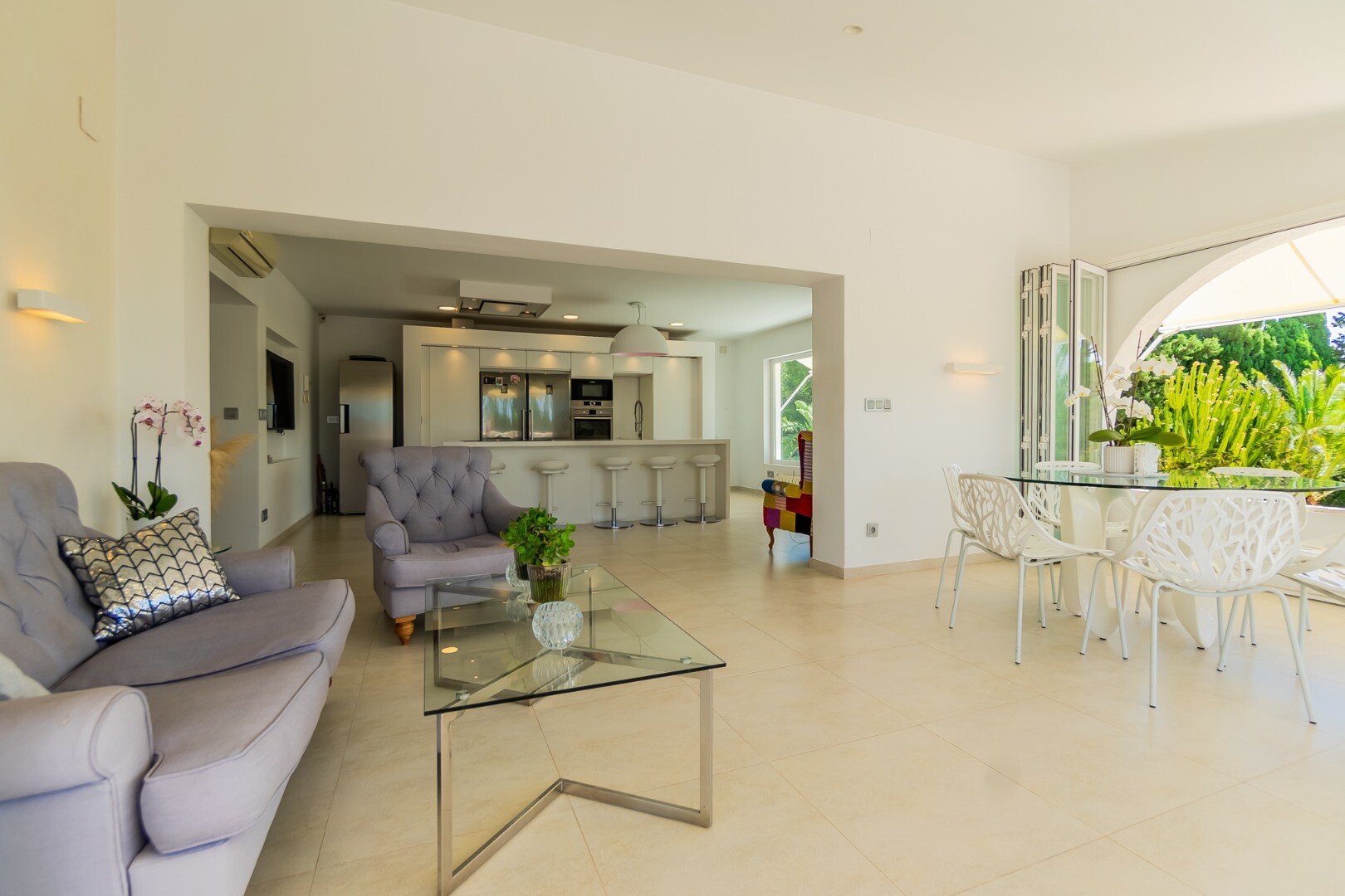 - **Huvudhuset:** Ligger på den övre tomten, denna vackr...a villa har 3 sovrum med nya inbyggda garderober och 2 moderna badrum med golvvärme. Det öppna konceptet amerikanska köket har en central ö med en vit/krämfärgad Silestone-bänkskiva, som integreras perfekt med vardagsrummet, som har en mysig öppen spis och stora fönster i söderläge för att fånga vinterns solljus.