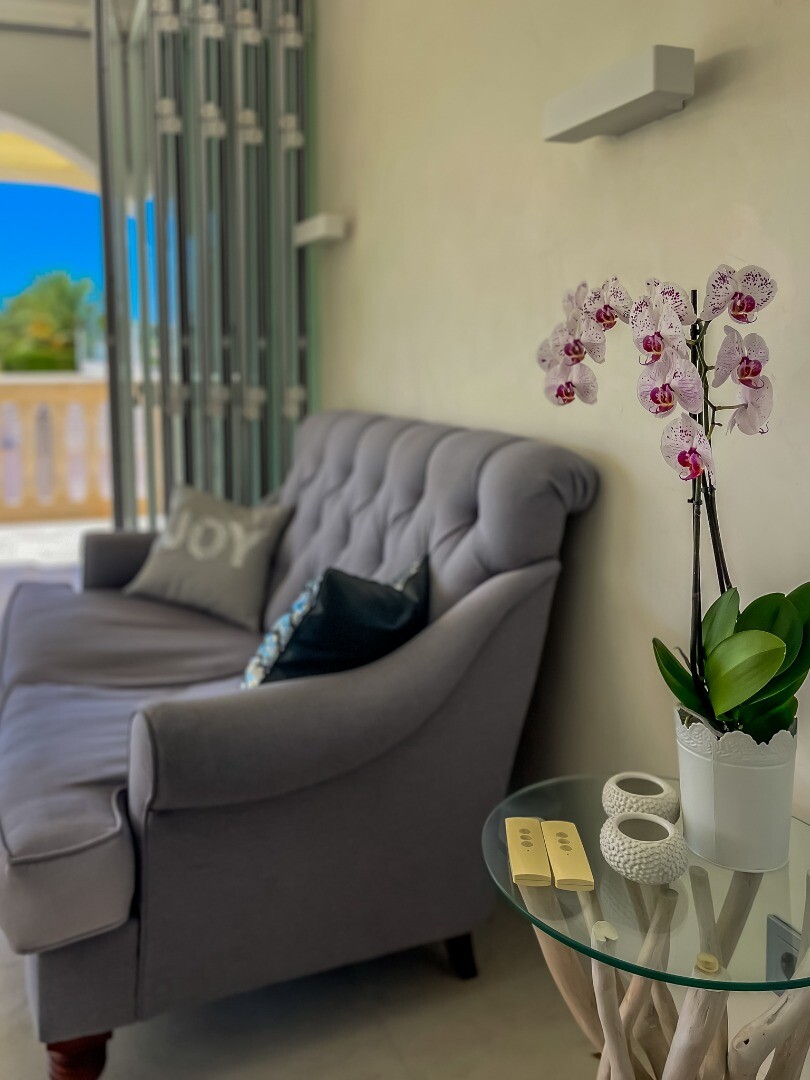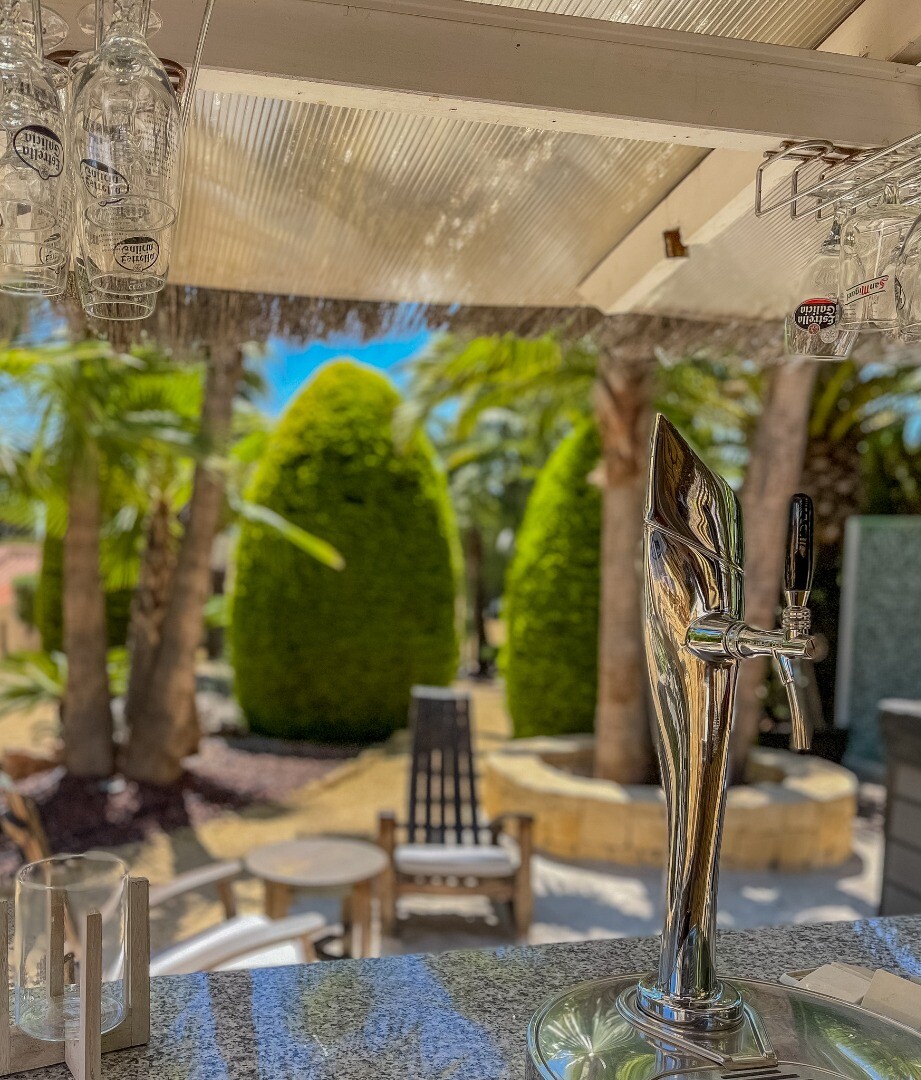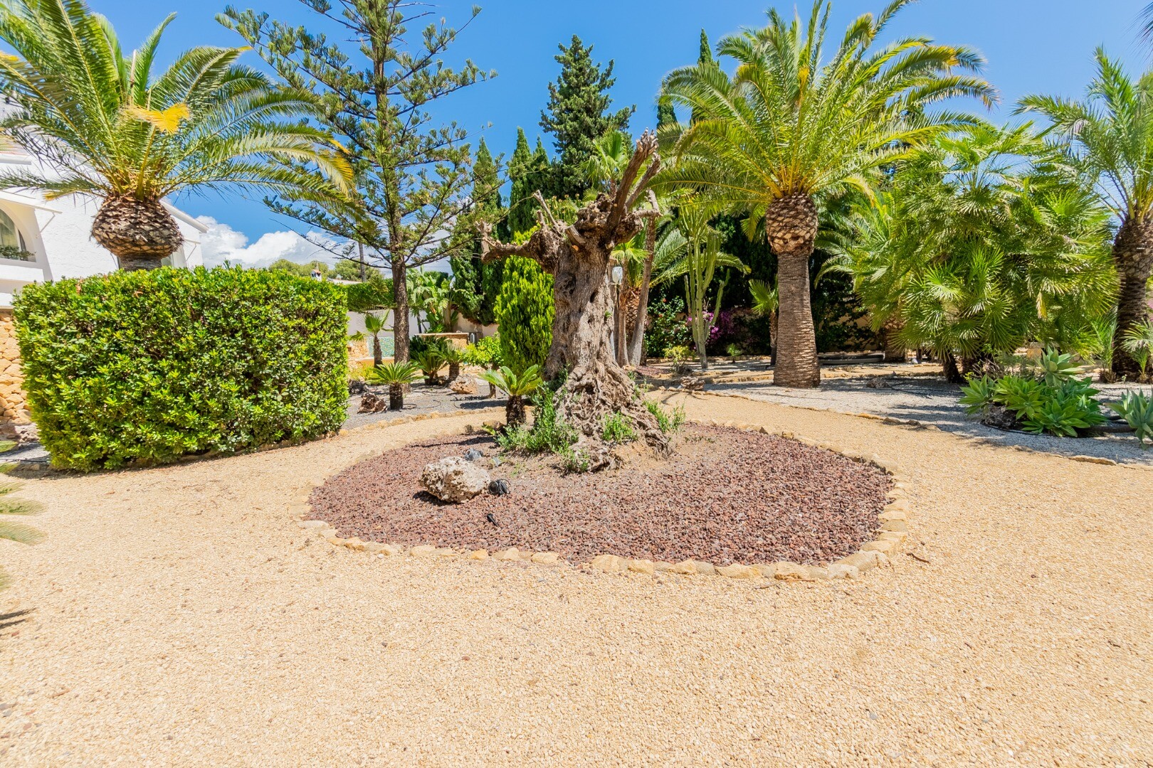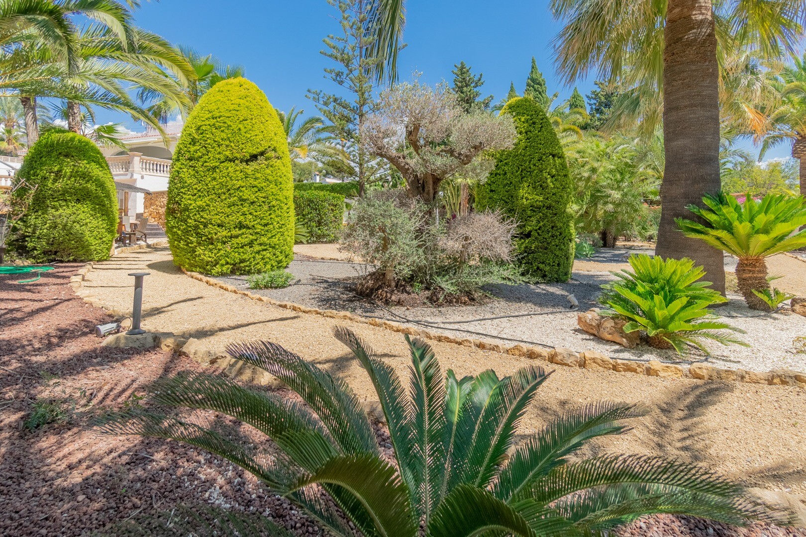 - **Tropisk trädgård:** Belägen på den nedre tomten är trädgården ett tropiskt paradis med palmer, nattbelysning, flera relaxområden och en bardel med ljud- och ljussystem integrerat bland den frodiga växtligheten. En jacuzzi med strandsand ger en exotisk touch.