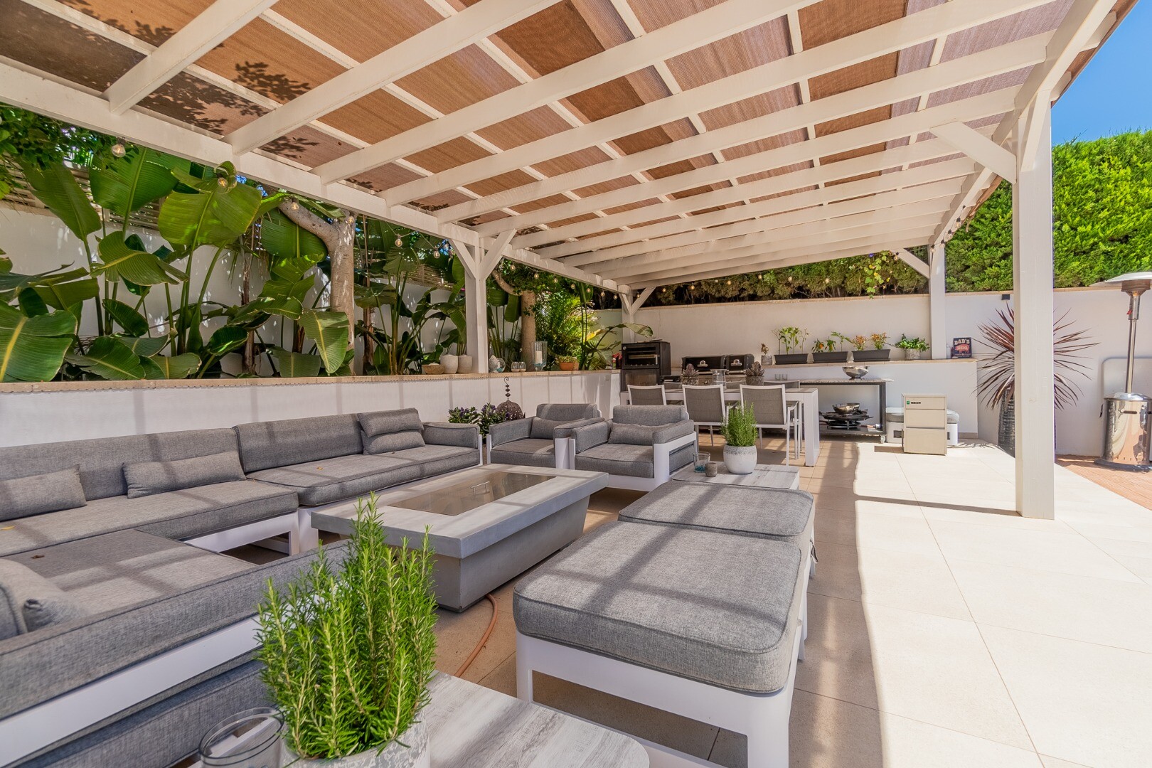 - **Poolområde:** Ett privat och soligt poolområde med tryckt betong, en 10x10m pergola och en infinitypool med vattenretursystem.