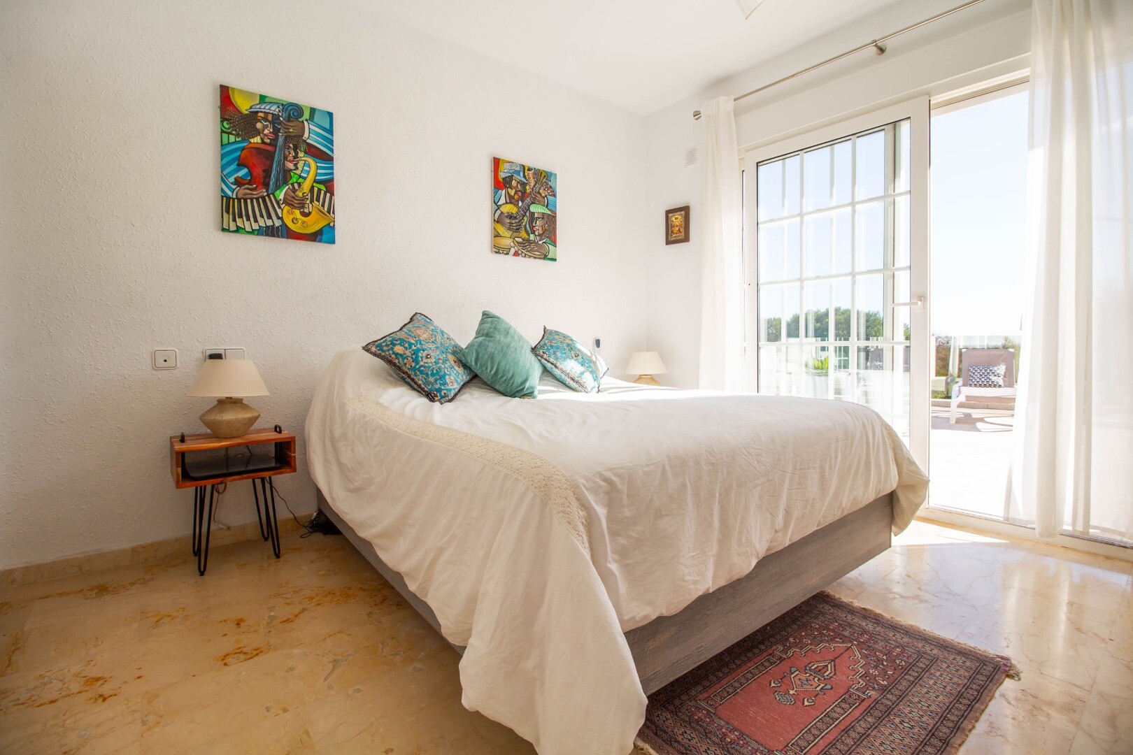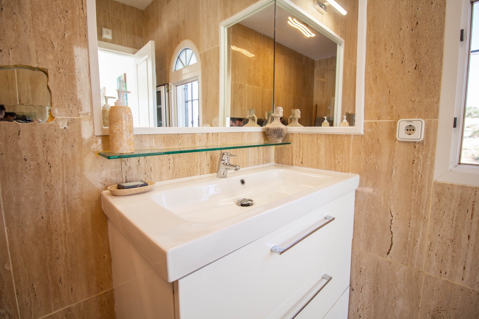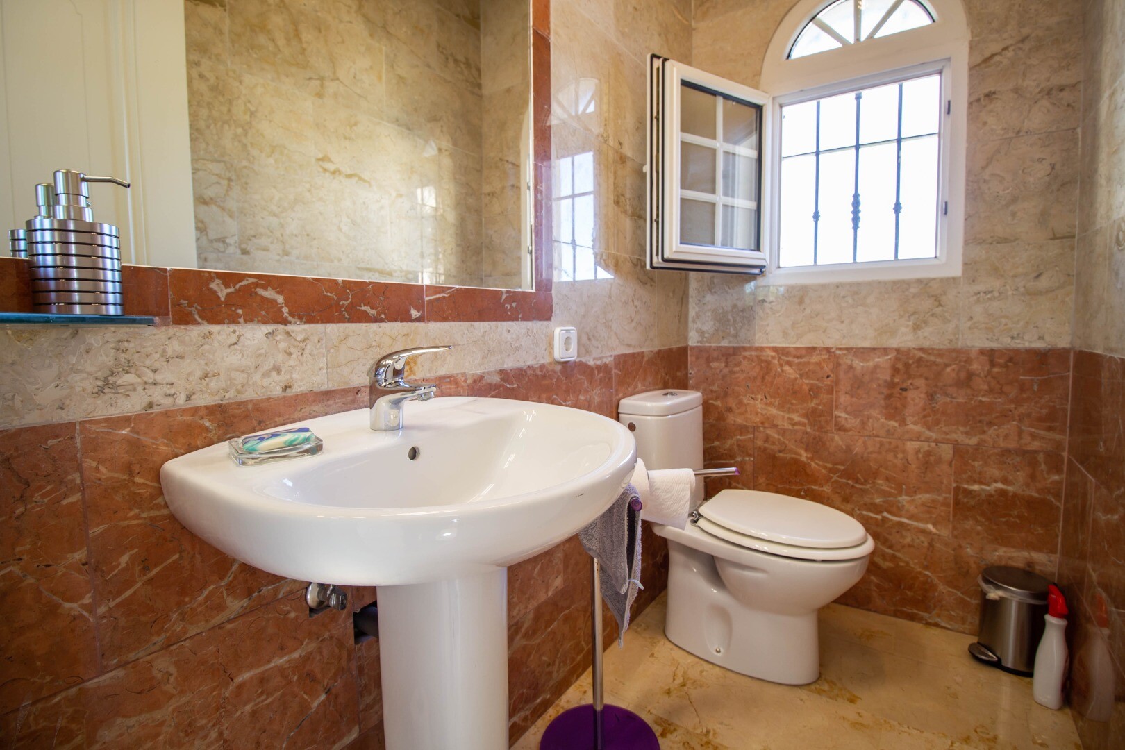 Det är fördelat på två våningar: bottenvåningen har: ett kontor, 4 sovrum, 2 badrum och en toalett. Tre sovrum har direkt tillgång till terrassen och utsikt.