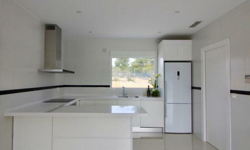 MEDELHAVSVILLA I TYPISK BY Fantastisk nybyggd villa på en tomt på 500 m2 i Pinoso. Villan har en byggd yta på 162,90, på en våning, med en veranda på 46,85m2, ett vardagsrum-matkök på 39,80m2, 3 sovrum, 2 badrum, ett galleri. Ingår i priset: Luftkonditionering genom kanaler före installation. Badrum med badrumsmöbler med spegel, duschvägg och krana...r. Elektriska apparater: keramikhäll, ugn, fläkt, diskmaskin. Kök med vita möbler och nationell granit LED-inredningslampor i hela huset och i verandan. Dubbelglas, innerdörrar och vita inbyggda garderober. Utomhus utan gräsmatta eller växter. Inhägnad med automatisk port för fordon och gångtunnel. Swimmingpool i extra Om du letar efter en lugn miljö, nära typiska spanska byar, omgiven av berg, är detta huset för dig!