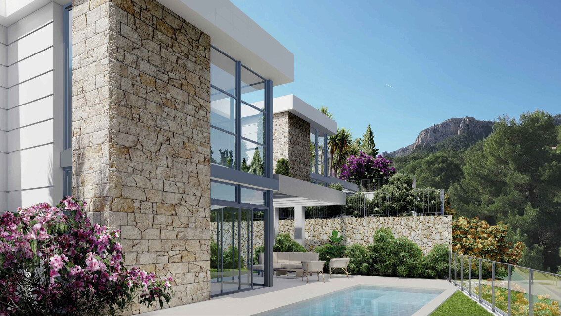 Denna moderna nybyggda fristående villa är fördelad på två våningar och erbjuder 157 m² byggd yta på en 321 m² stor tomt i ett lugnt bostadsområde i Polop.