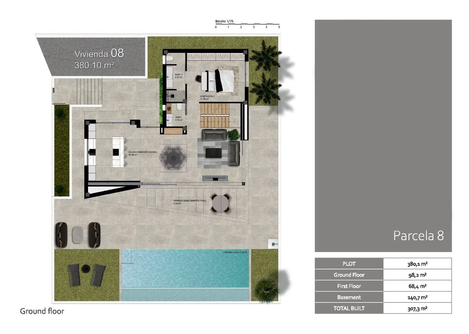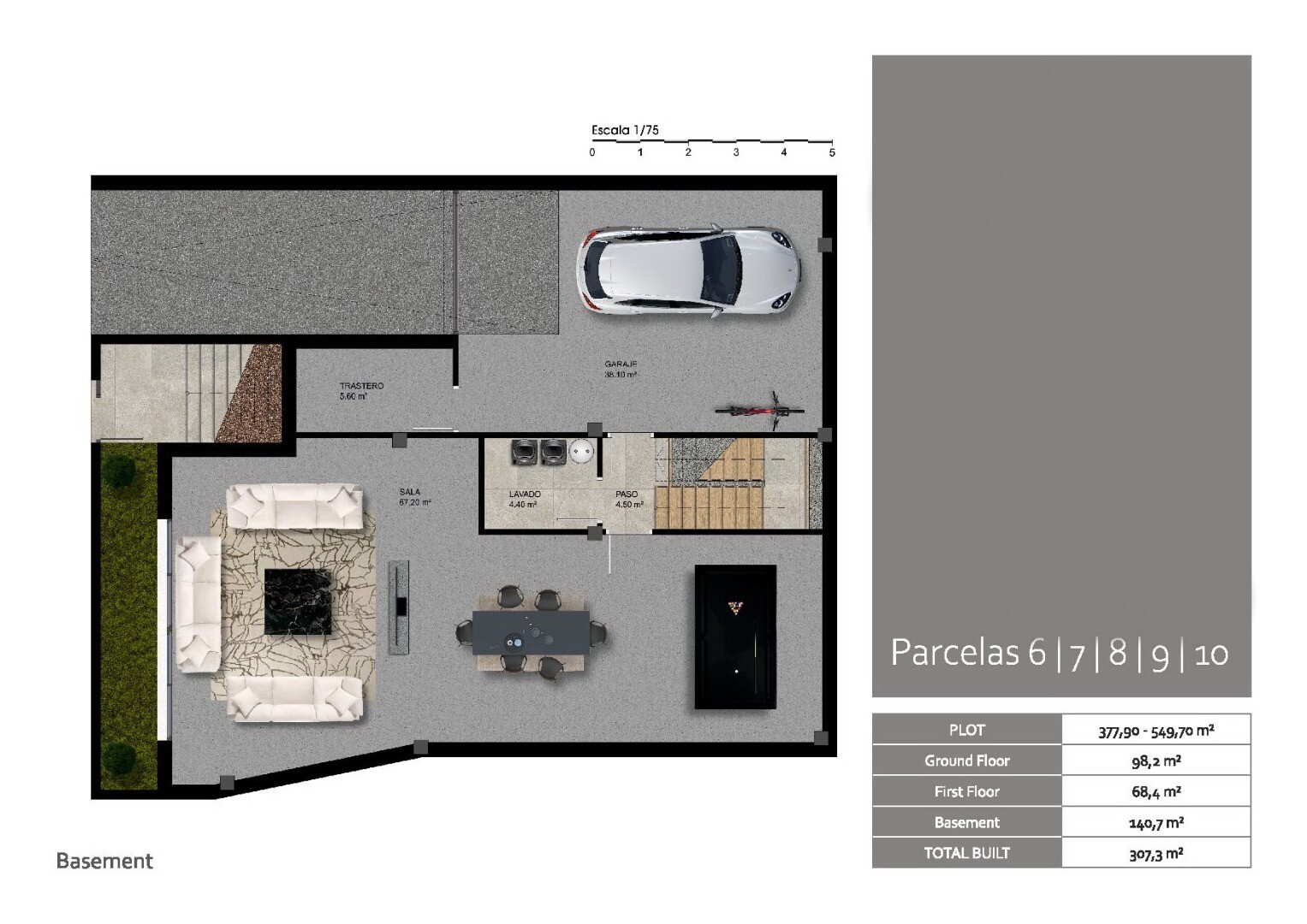 10 moderna ljusa villor med privat pool, parkering, källare och fullt utrustat kök.