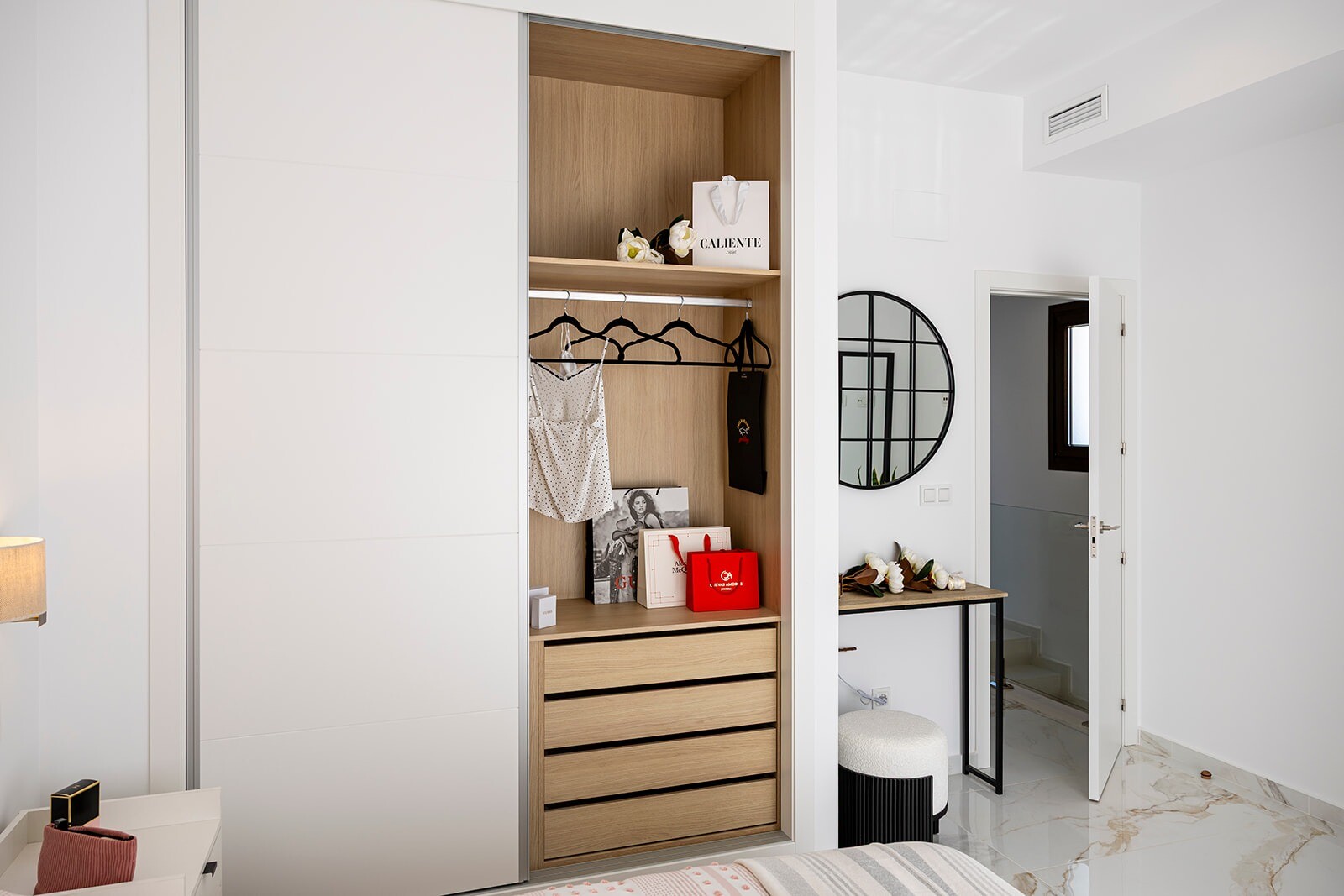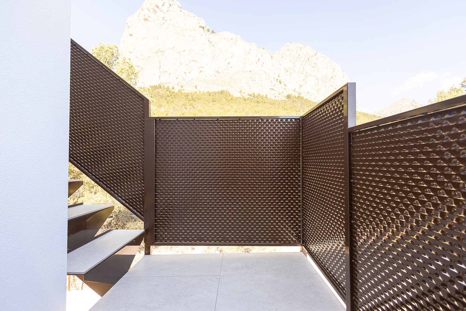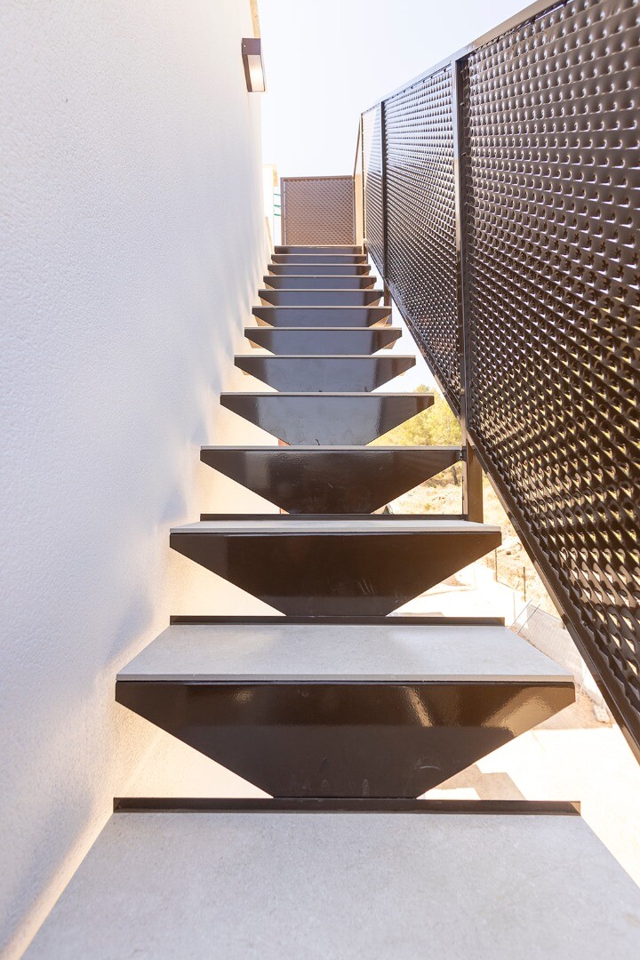 Utomhus finns en terrass på 36 m², ett täckt uterum, privat parkeringsplats och en privat pool – perfekt för att njuta av det medelhavsklimatet.