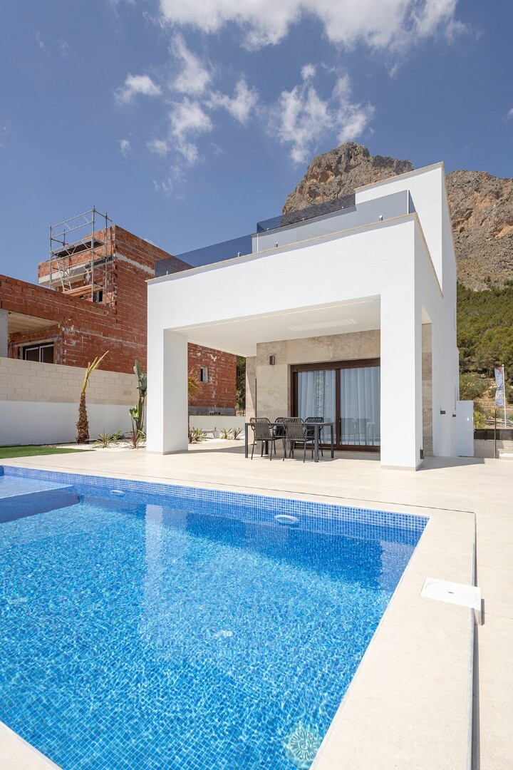 Exklusiv nybyggd fristående villa belägen i ett lugnt bostadsområde i Polop, omgiven av natur och med enkel tillgång till stränderna och alla viktiga bekvämligheter på Costa Blanca.