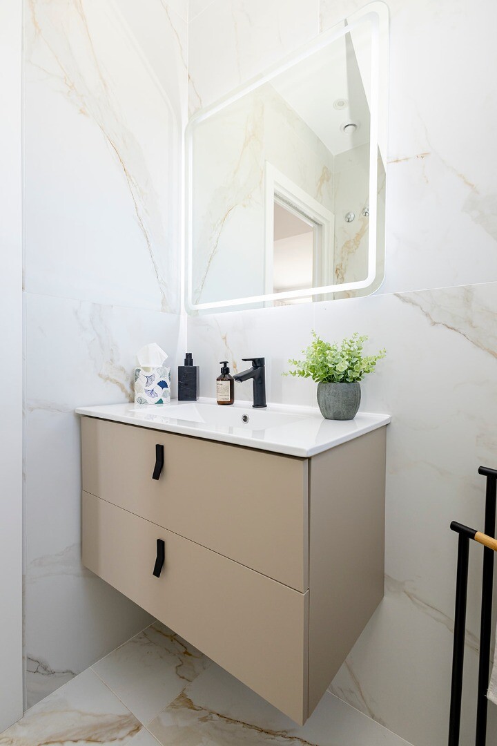 Villan erbjuder 3 rymliga sovrum, var och en med eget badrum med golvvärme, samt en gästtoalett. Det ljusa vardagsrummet med matplats är integrerat med ett modernt öpp...et kök, fullt utrustat.