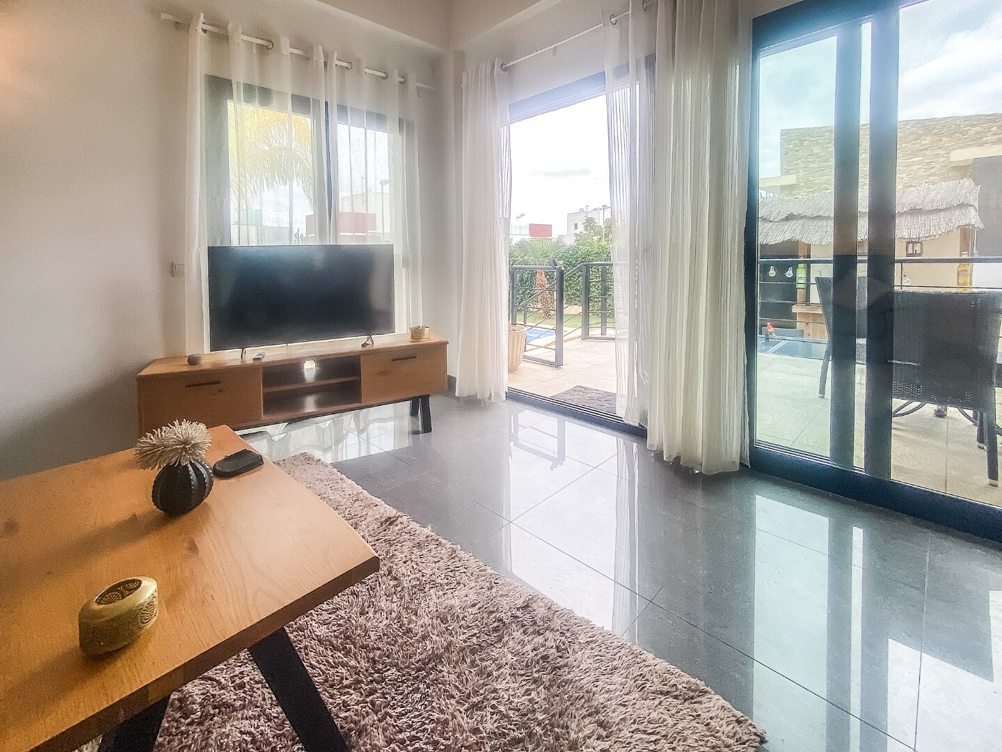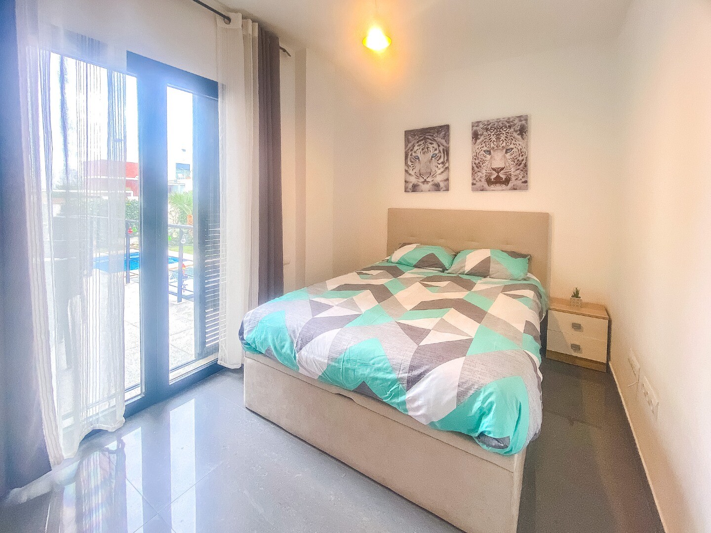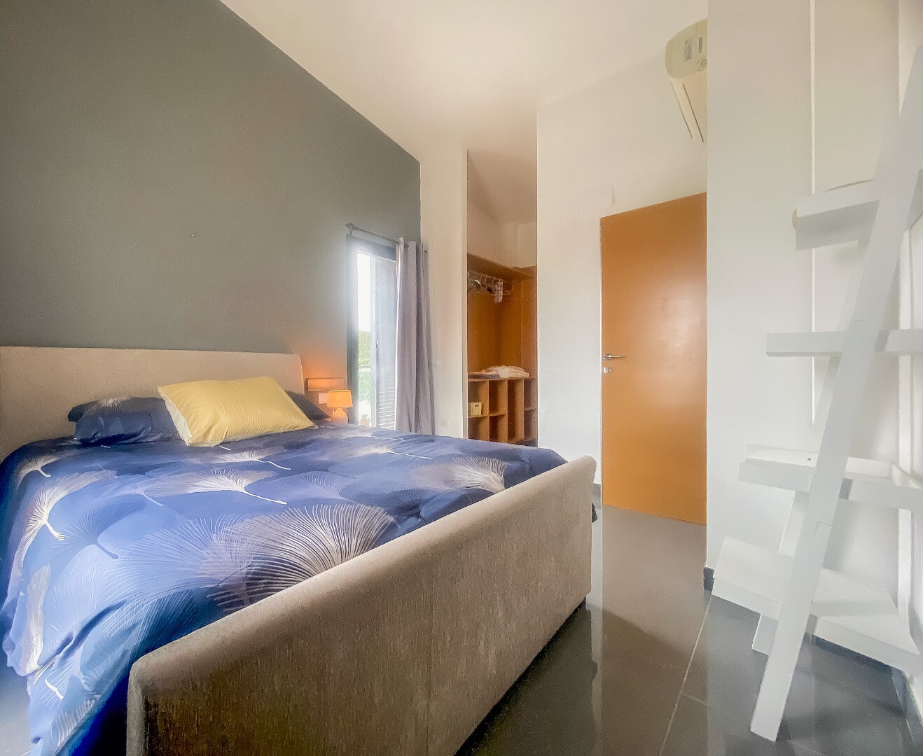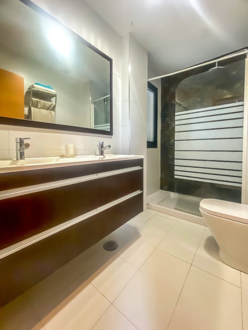 - Den övre våningen är tillägnad huvudsovrummet med eget badrum, vilket ger avskildhet och öppen utsikt.
