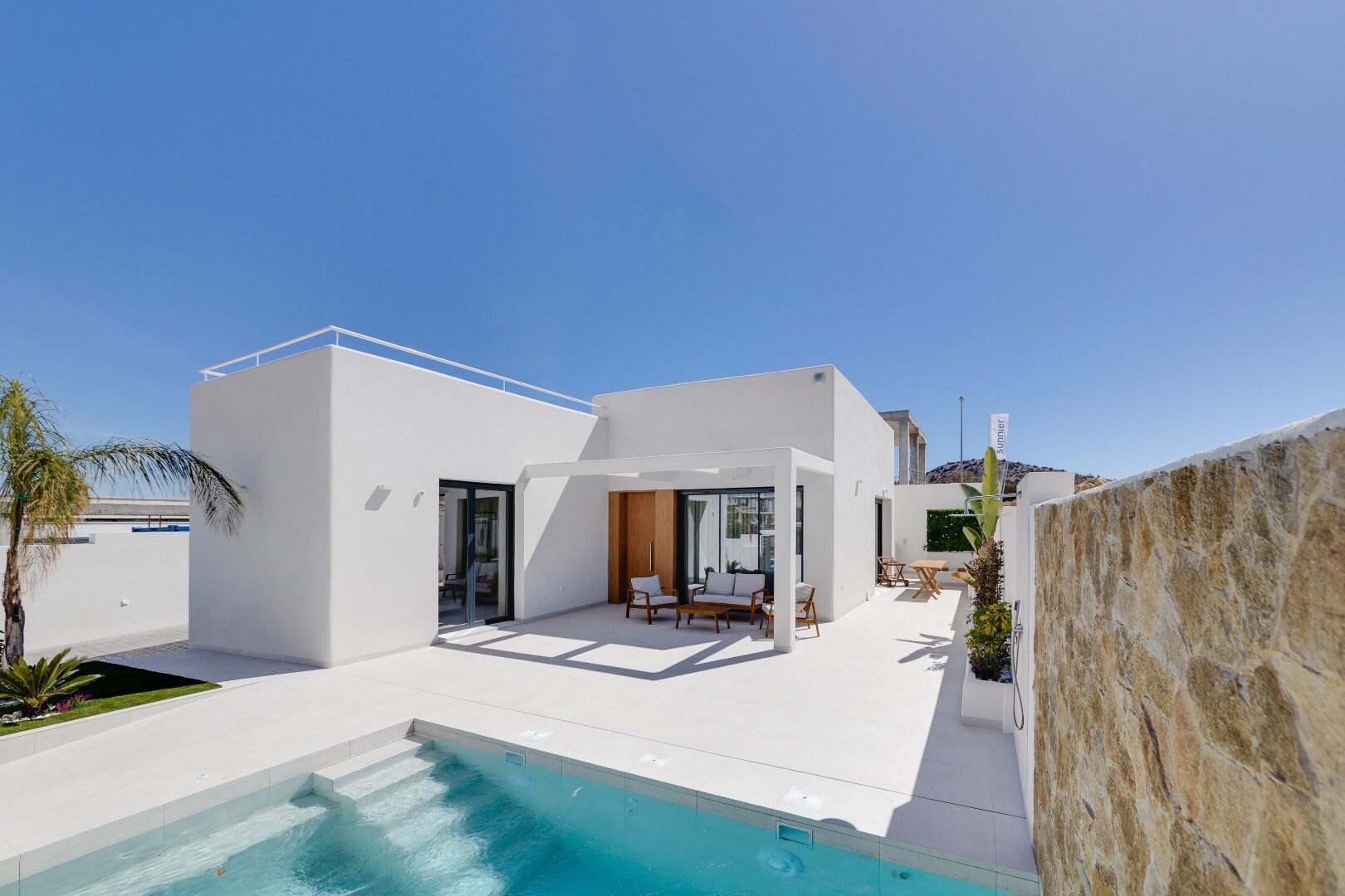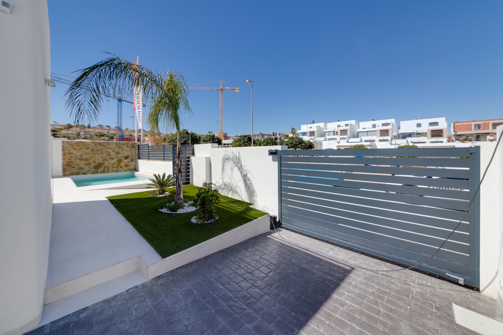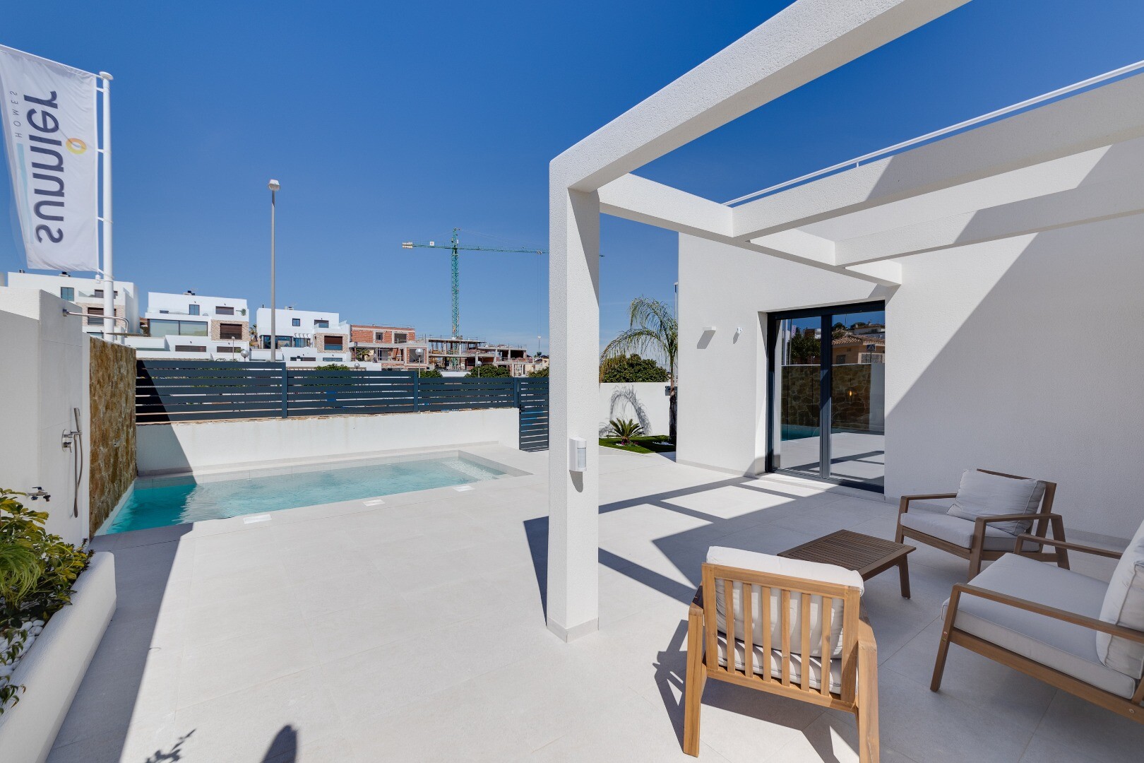 Denna moderna fristående villa i La Marquesa Golf, Rojales, erbjuder en elegant och funktionell design. Med 101 m² byggd på en tomt på 307 m², har denna fastighet 2 sovrum och 2 badrum. Vardagsrummet och matsalen är perfekt integrerade med ett kök i öppen planlösning, utrustat med högkvalitativa möbler och apparater. Villan har en 101 m² stor källa...re, vilket ger extra utrymme för förvaring eller anpassning efter dina behov. Dessutom finns det ett 60 m² stort solarium, perfekt för att koppla av och njuta av Medelhavsklimatet. De rymliga terrasserna och trädgården erbjuder en perfekt miljö för utomhusliv. Fastigheten har parkering på tomten och en privat pool, perfekt för att svalka sig på varma dagar. Villan är utrustad med aerotermisk uppvärmning och luftkonditionering, vilket garanterar komfort och energieffektivitet. Dess läge är utmärkt, bara 600 meter från La Marquesa Golf och 10 minuter från de vackra stränderna i Guardamar. Denna villa i La Marquesa Golf kombinerar lyx, komfort och ett privilegierat läge, perfekt för dem som letar efter en avslappnad och sofistikerad livsstil.